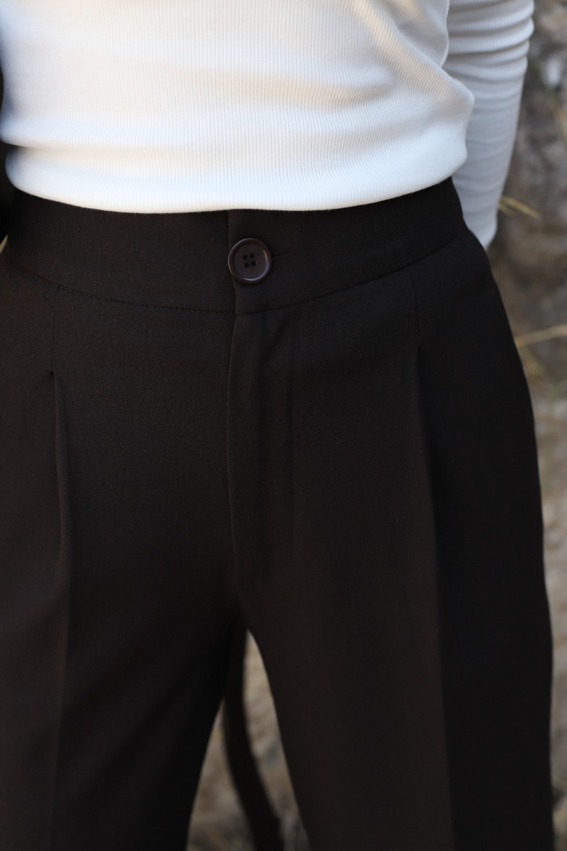 ACI KAHVE PİLE DETAYLI DÜĞMELİ PALAZZO