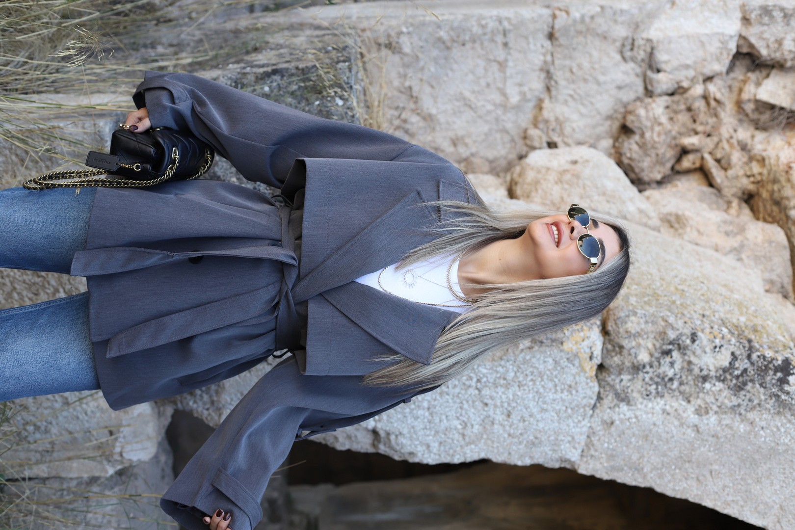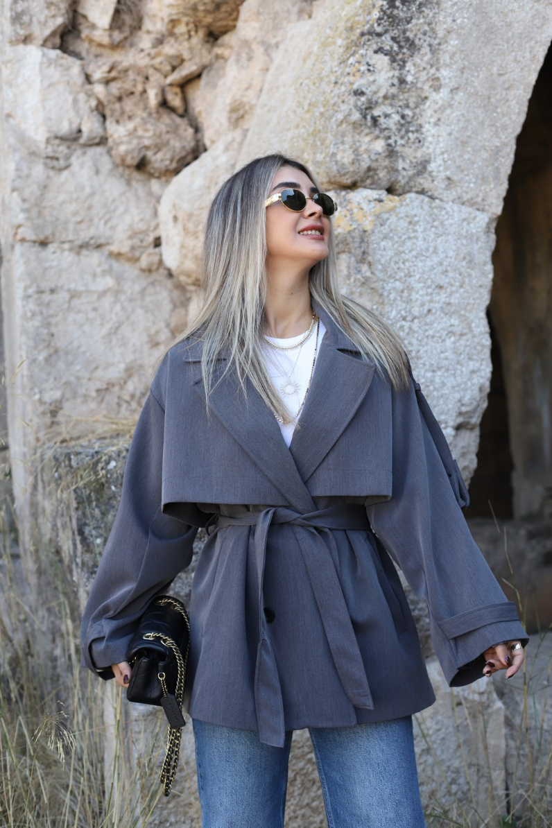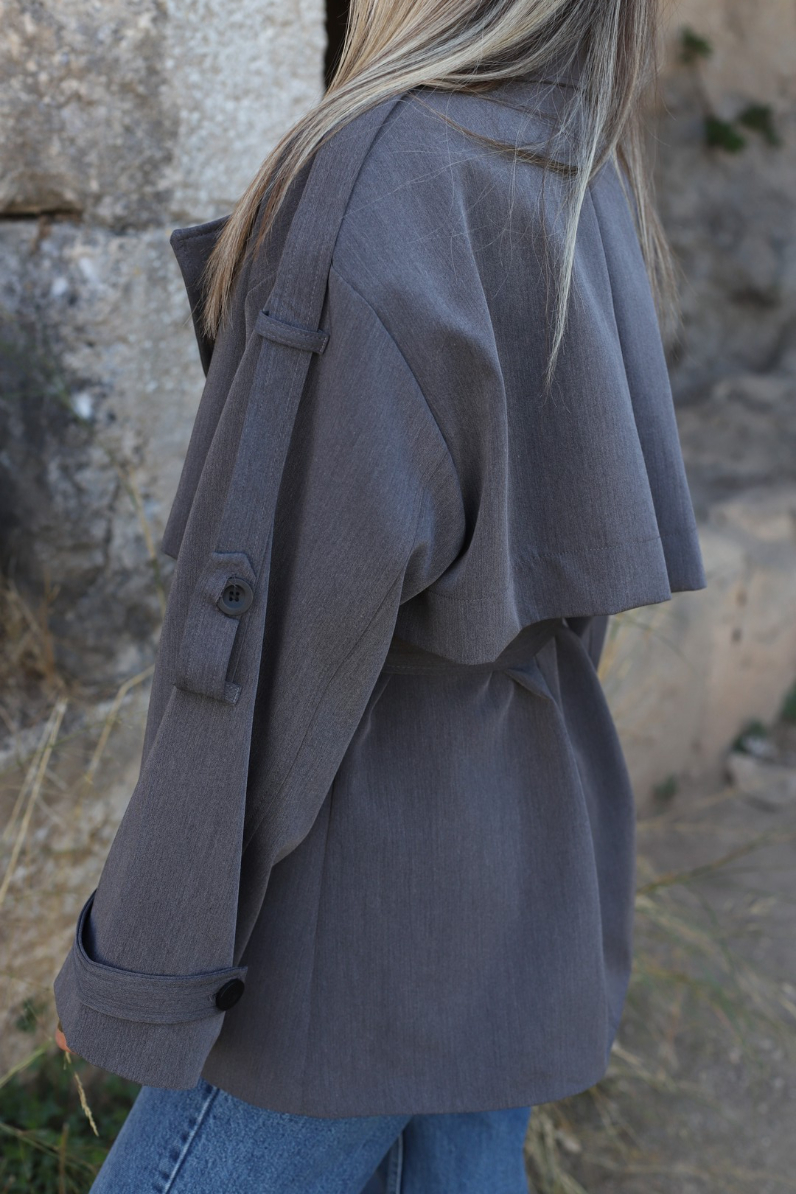 ANTRASİT KISA STANDART BEDEN POLİVİSKON TRENÇ