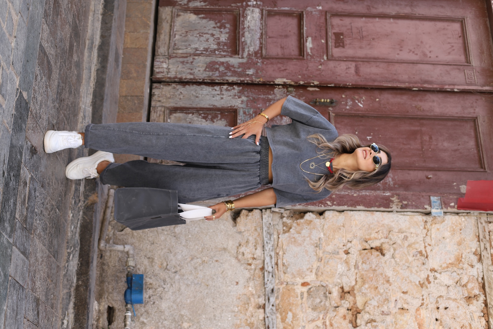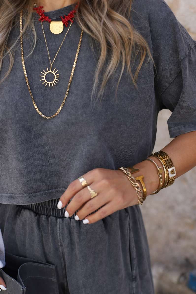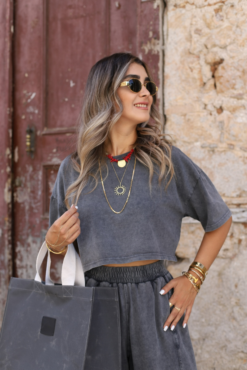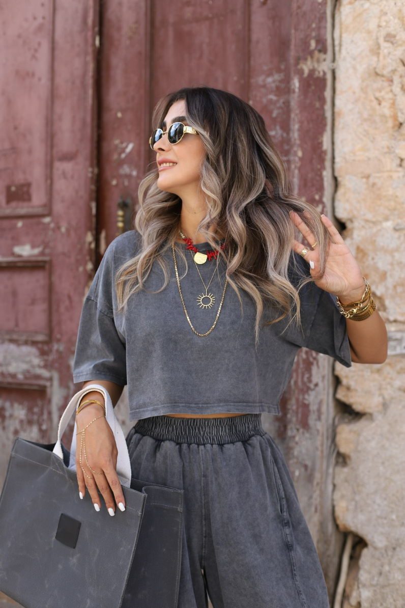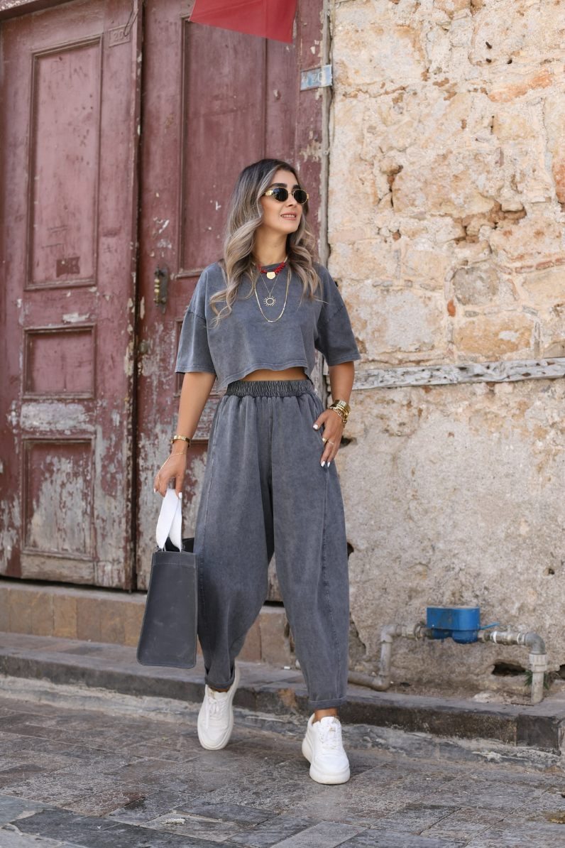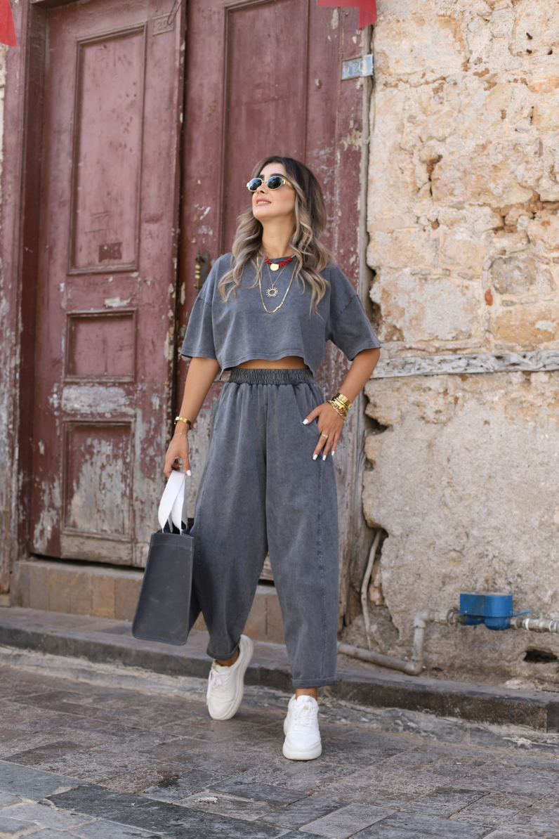 ANTRASİT STANDART BEDEN ESKİTME ŞALVAR TSHİRT TAKIM