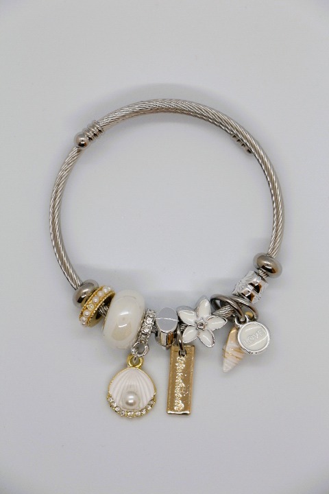 B-29 GÜMÜŞ İNCİLİ DENİZ KABUĞU CHARM BİLEKLİK