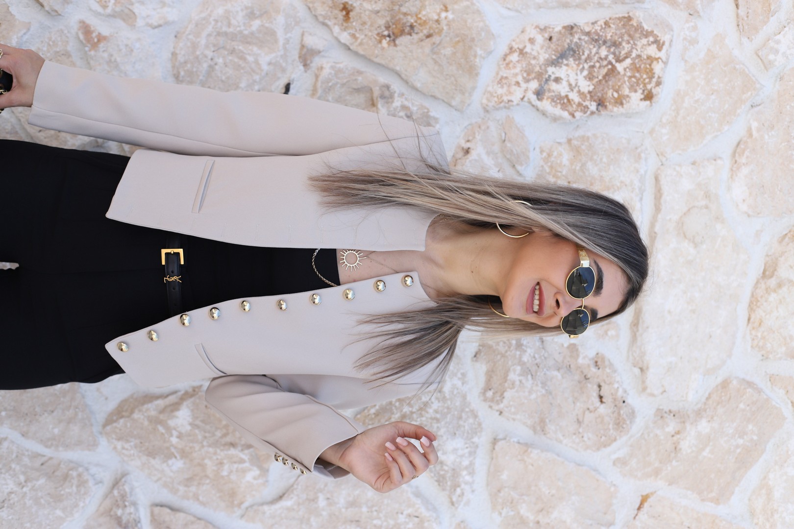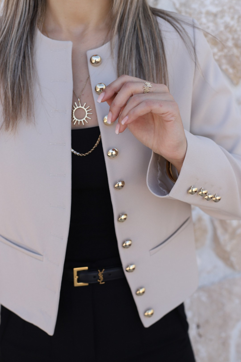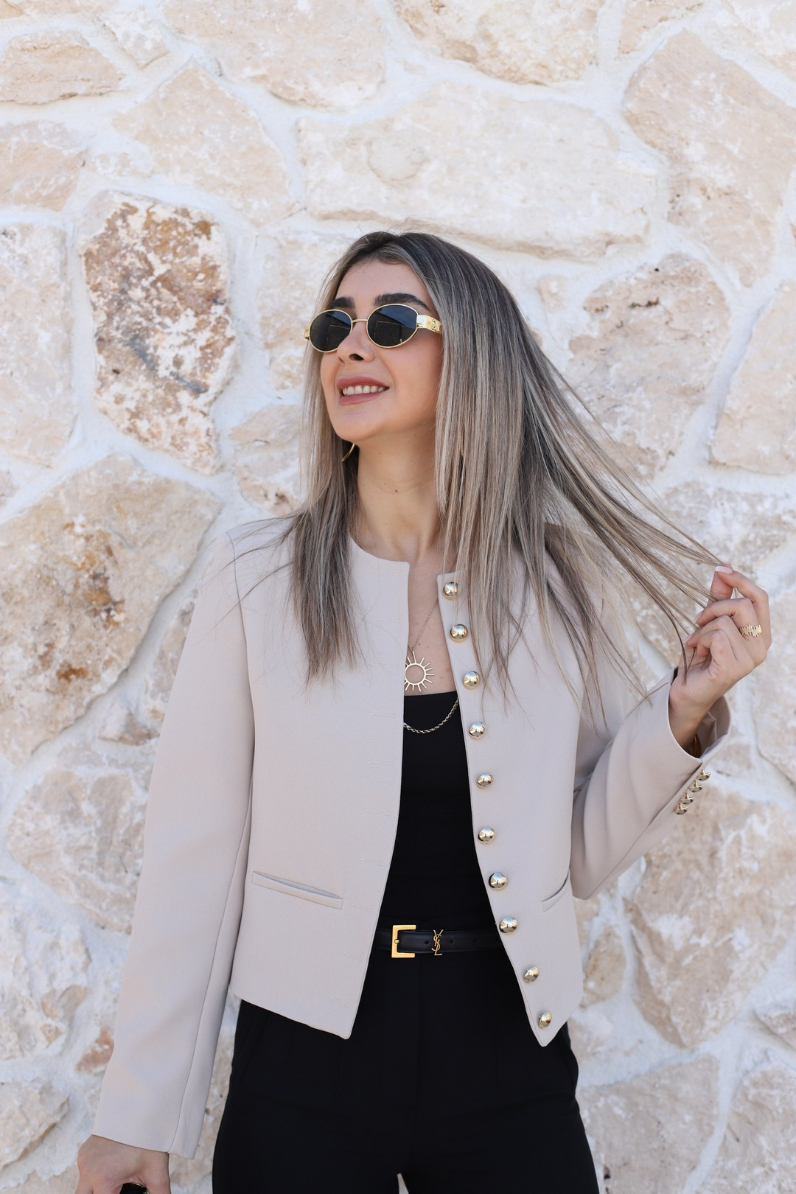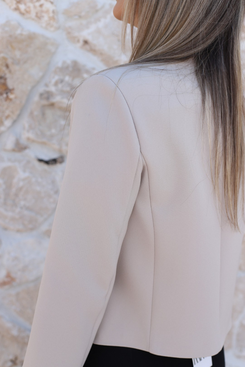 BEJ BİSİKLET YAKA GOLD DÜĞMELİ KISA CEKET