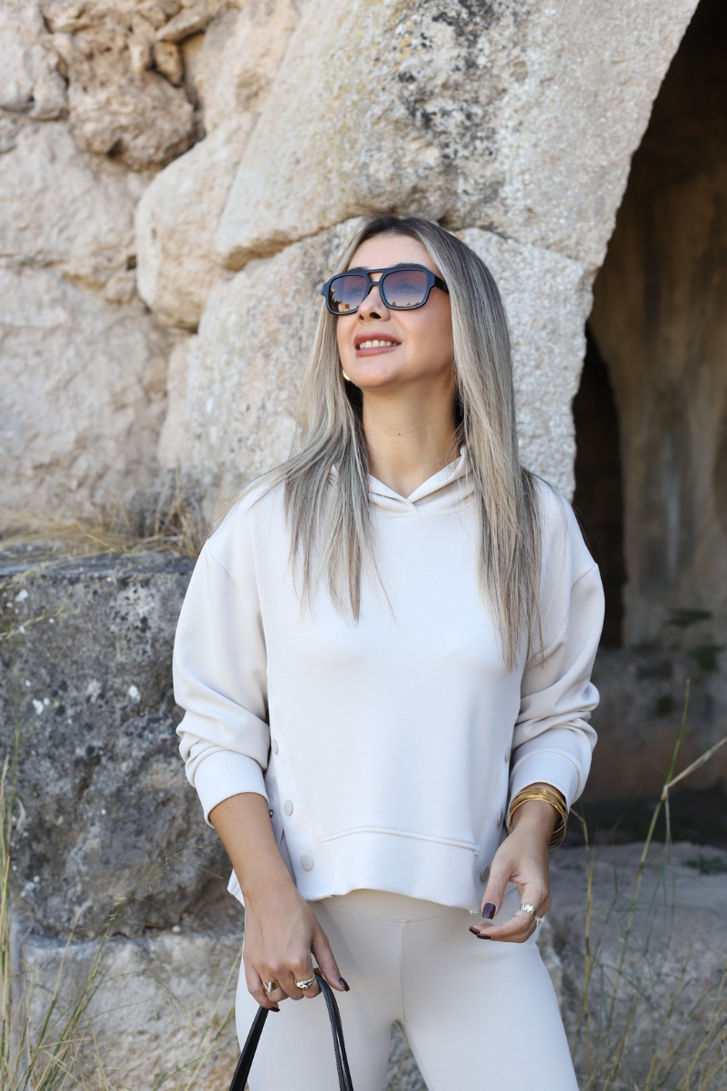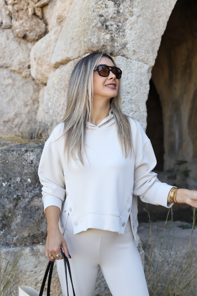 BEJ ÇITÇIT DETAY KAPÜŞONLU MODAL EŞOFMAN TAKIMI