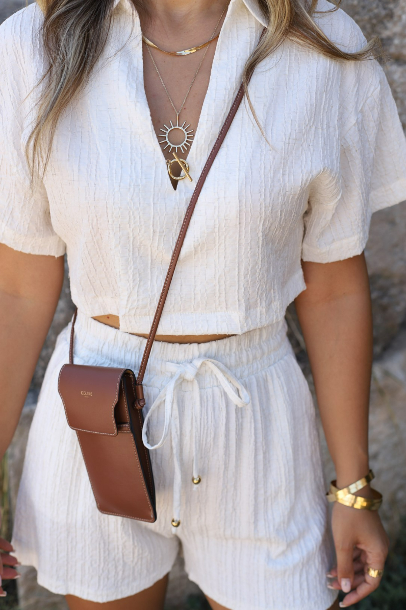 BEJ GOFRE ÖNÜ METAL ŞORTLU TAKIM