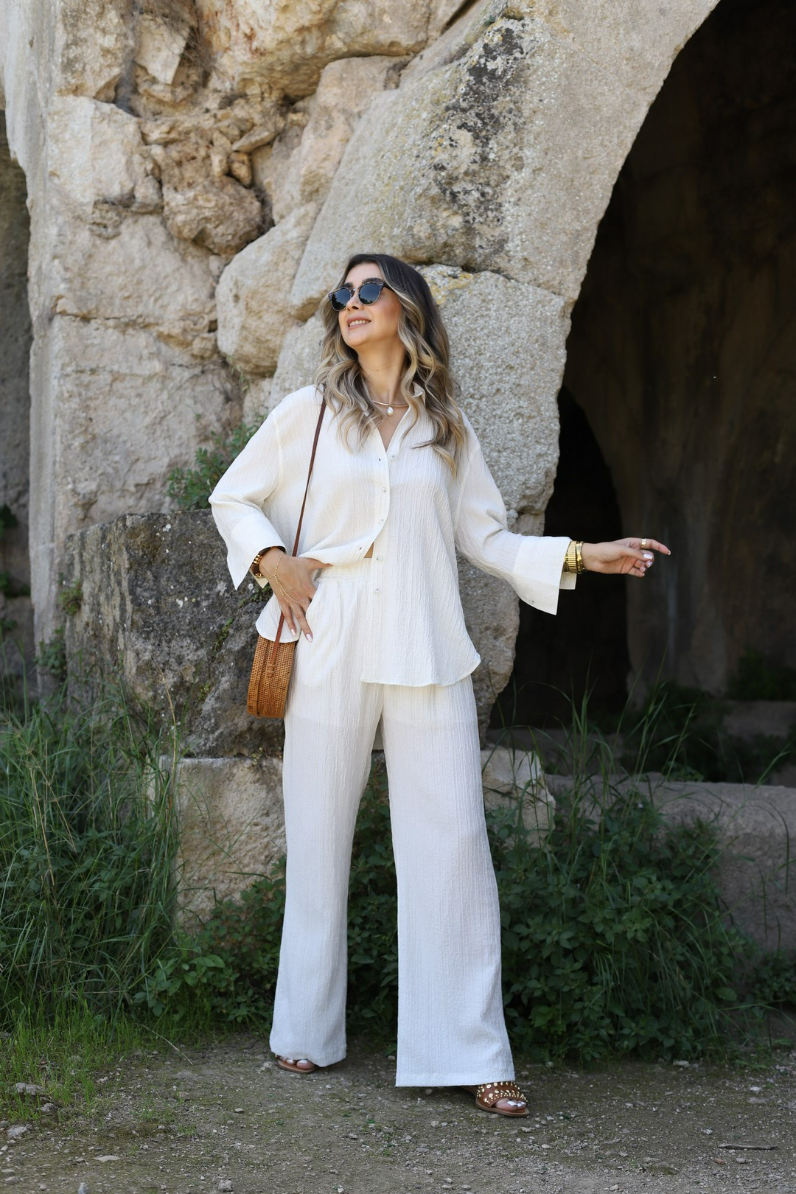BEJ PALAZZO GÖMLEKLİ GOFRE TAKIM