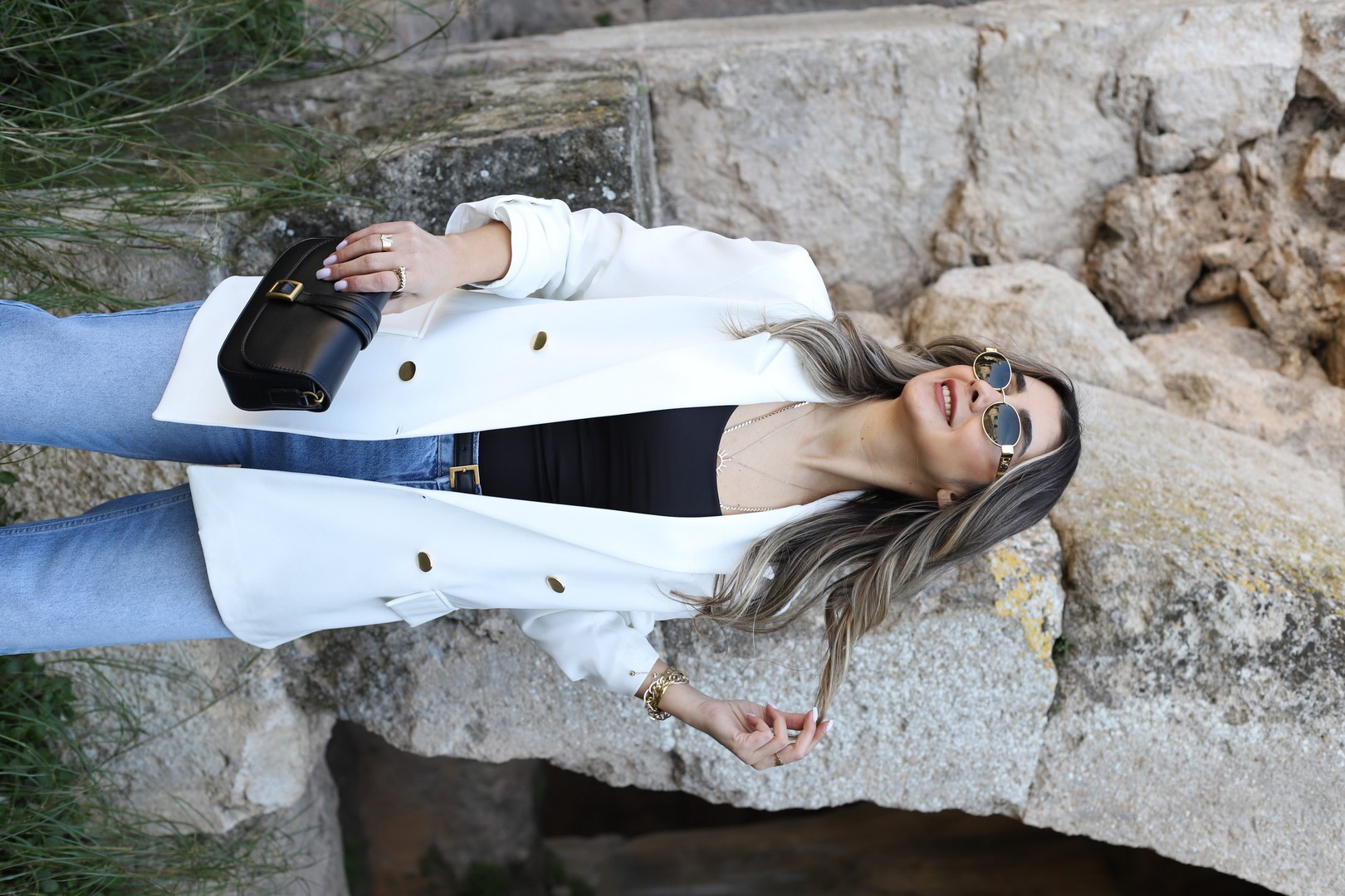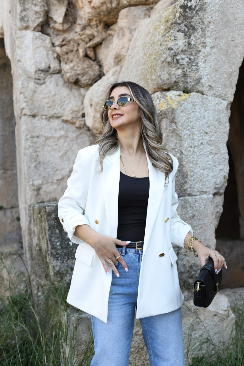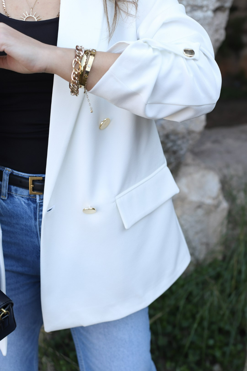 BEYAZ KOLU KATLI GOLD DÜĞMELİ BLAZER