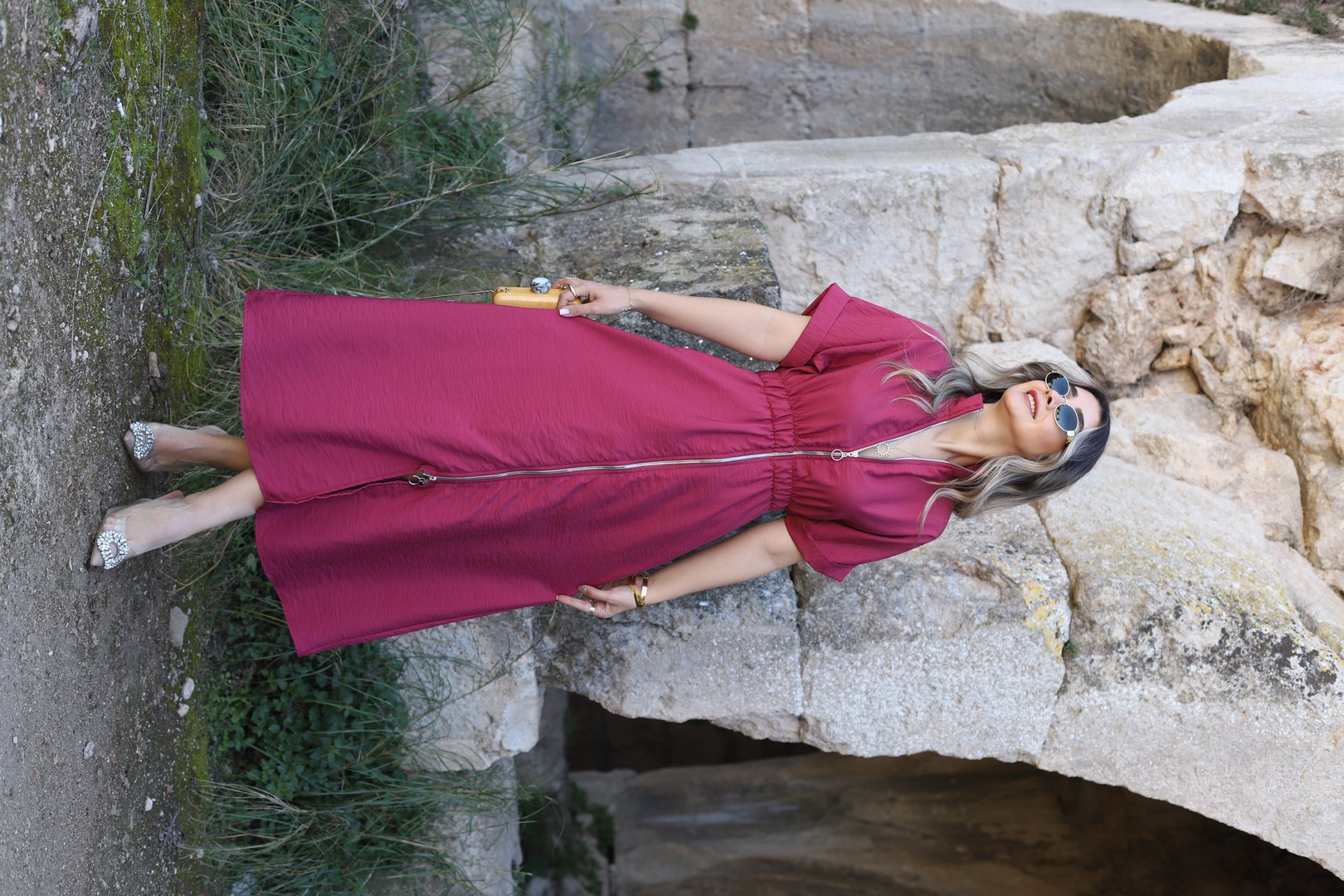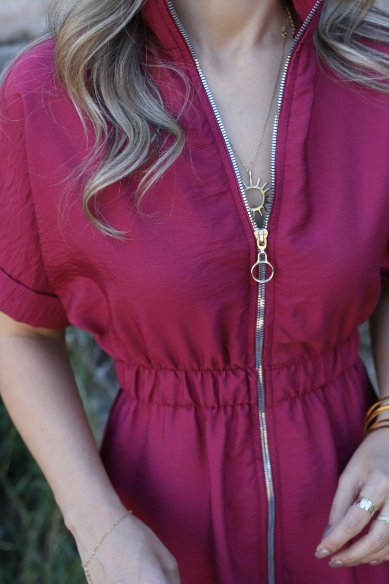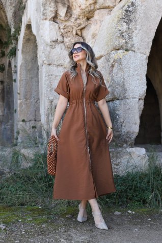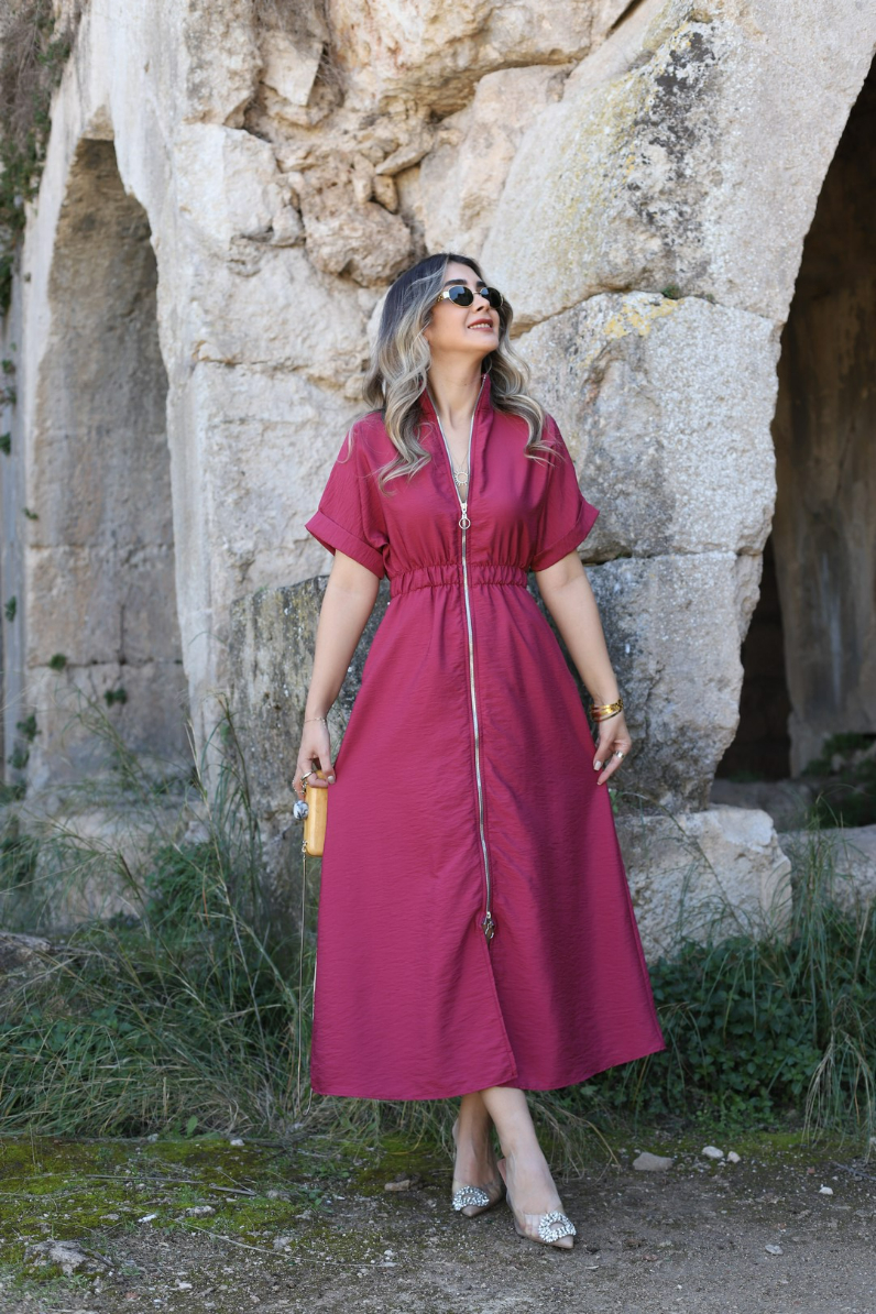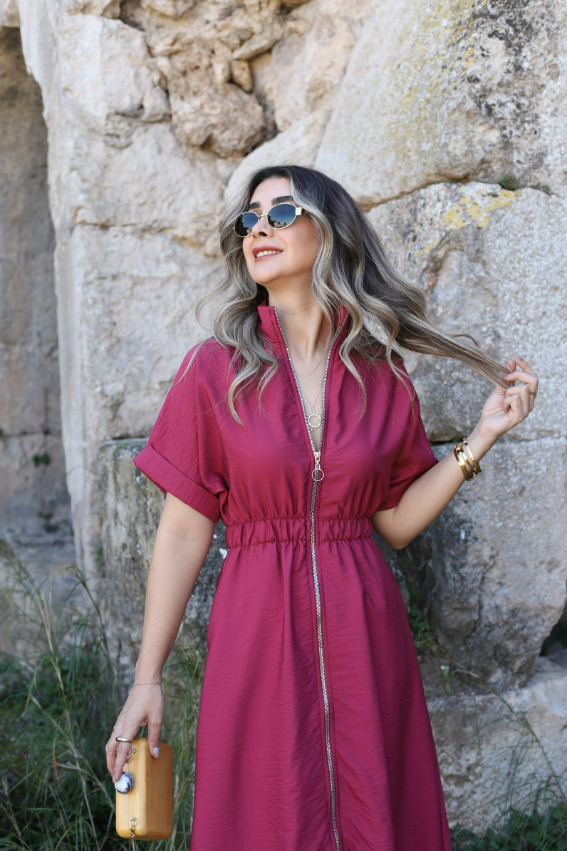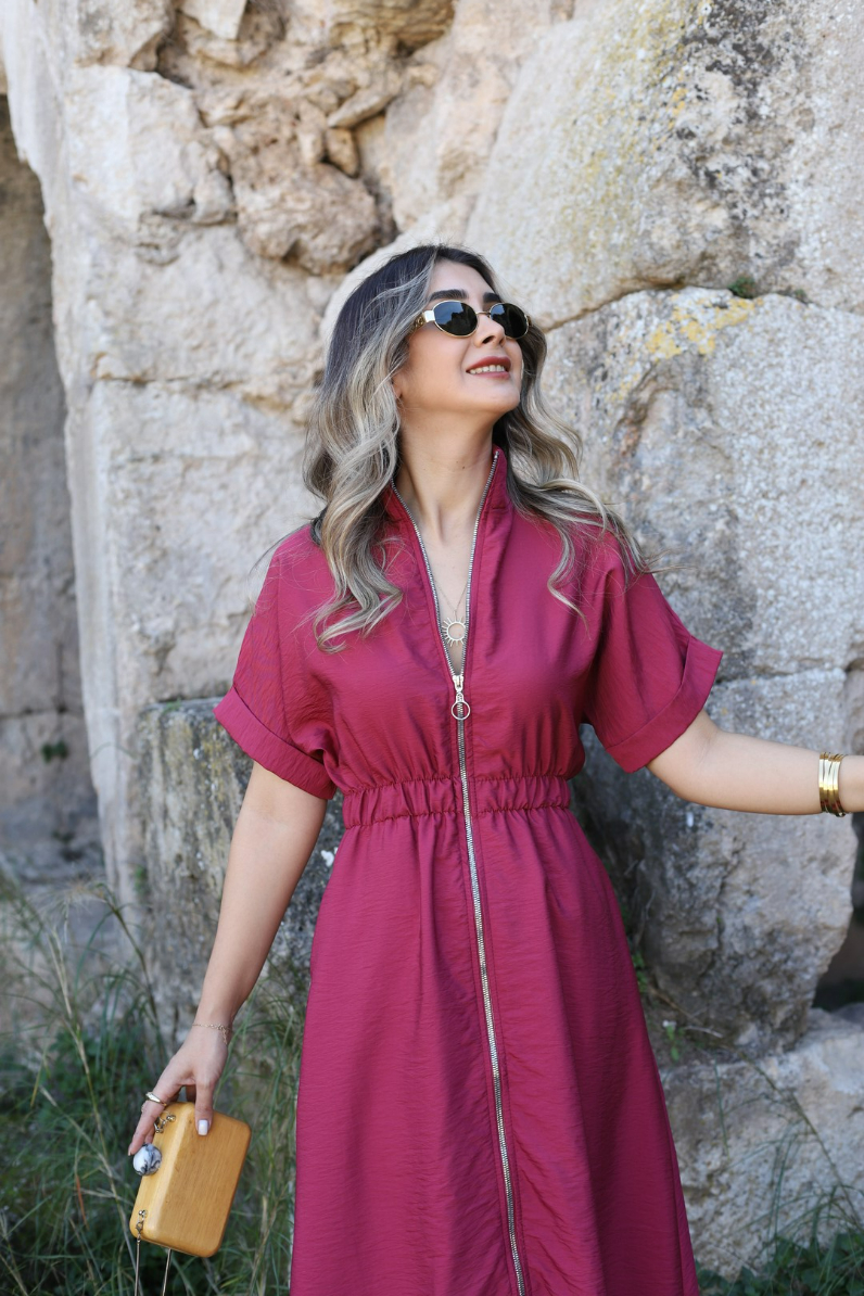 BORDO BOYDAN FERMUARLI ELBİSE