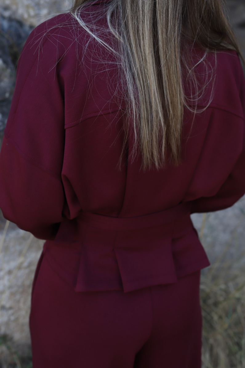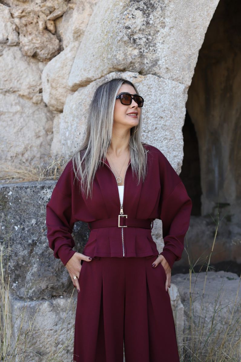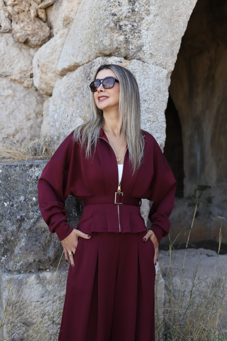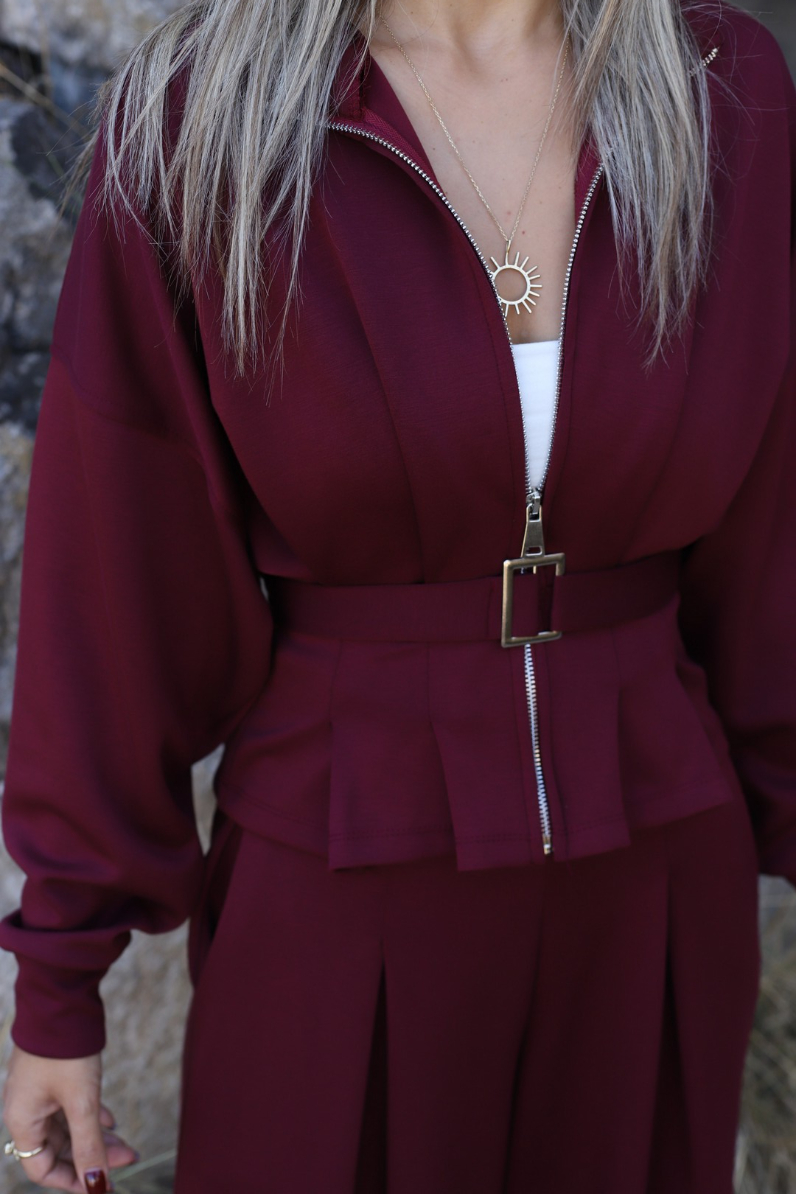 BORDO KEMER DETAYLI FERMUARLI MODAL TAKIM
