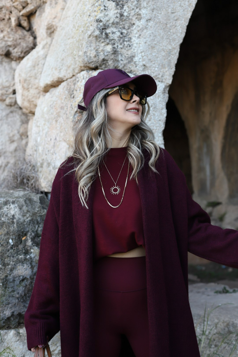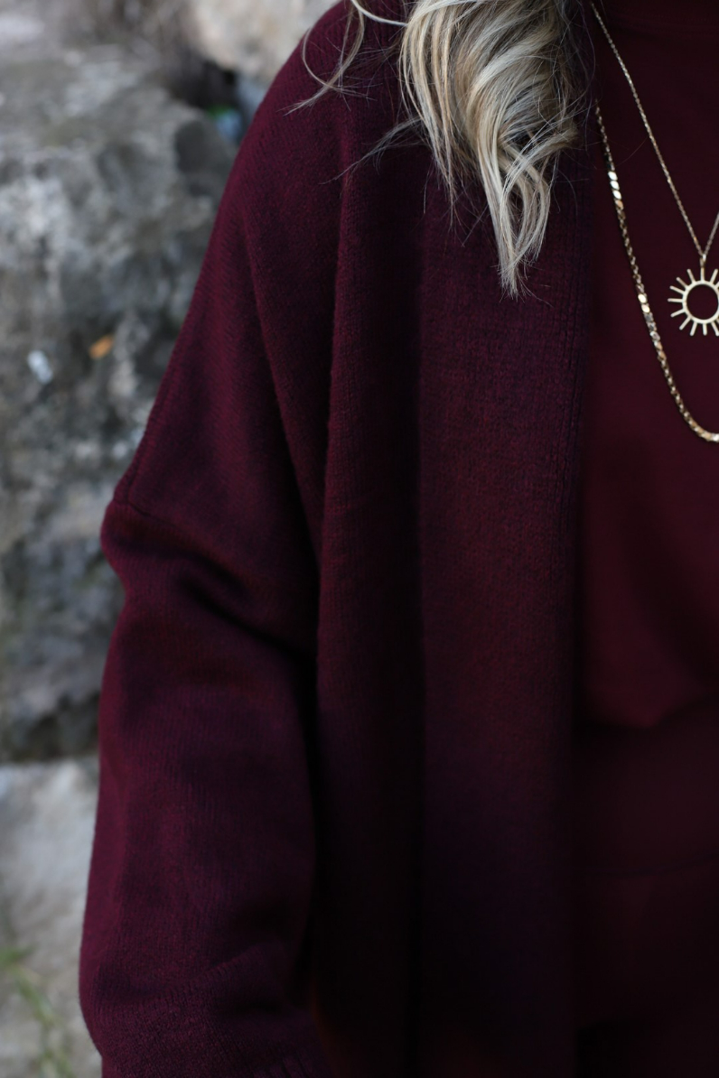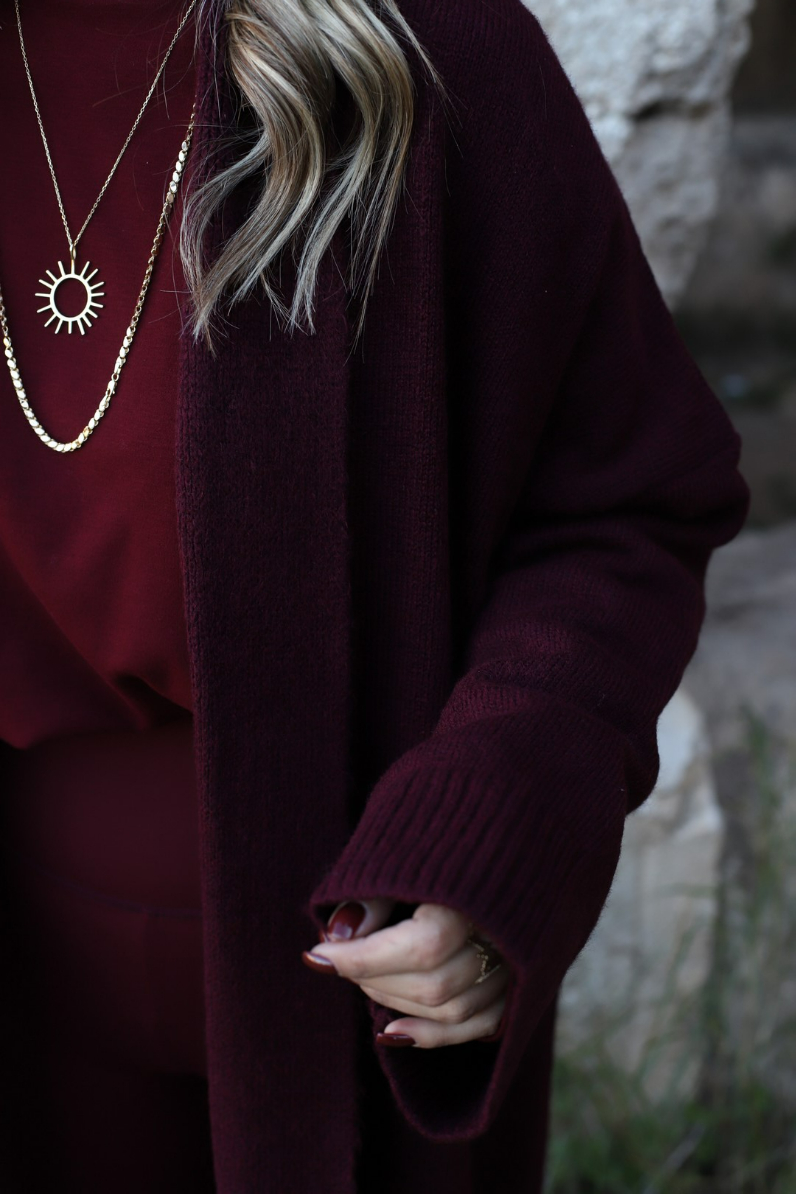 BORDO STANDART BEDEN ÖNÜ AÇIK ŞAL YAKA HIRKA