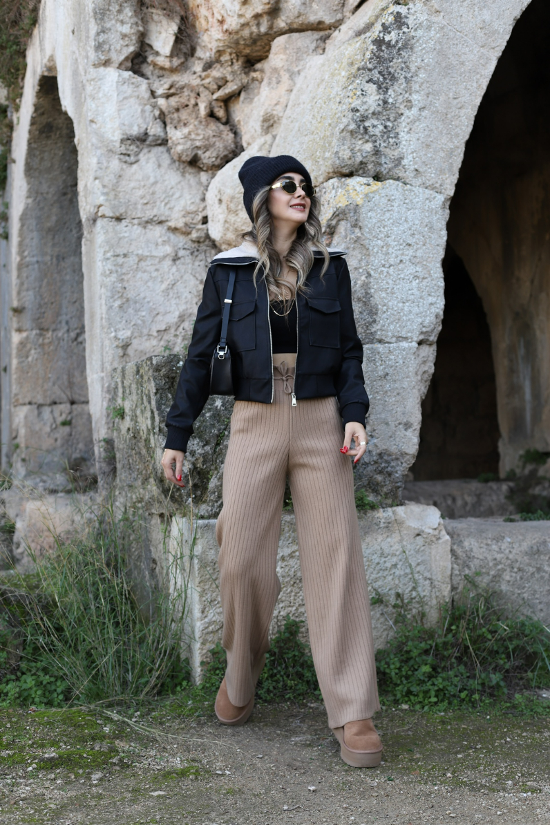 CAMEL FİTİLLİ BOL PAÇA TRİKO PANTOLON