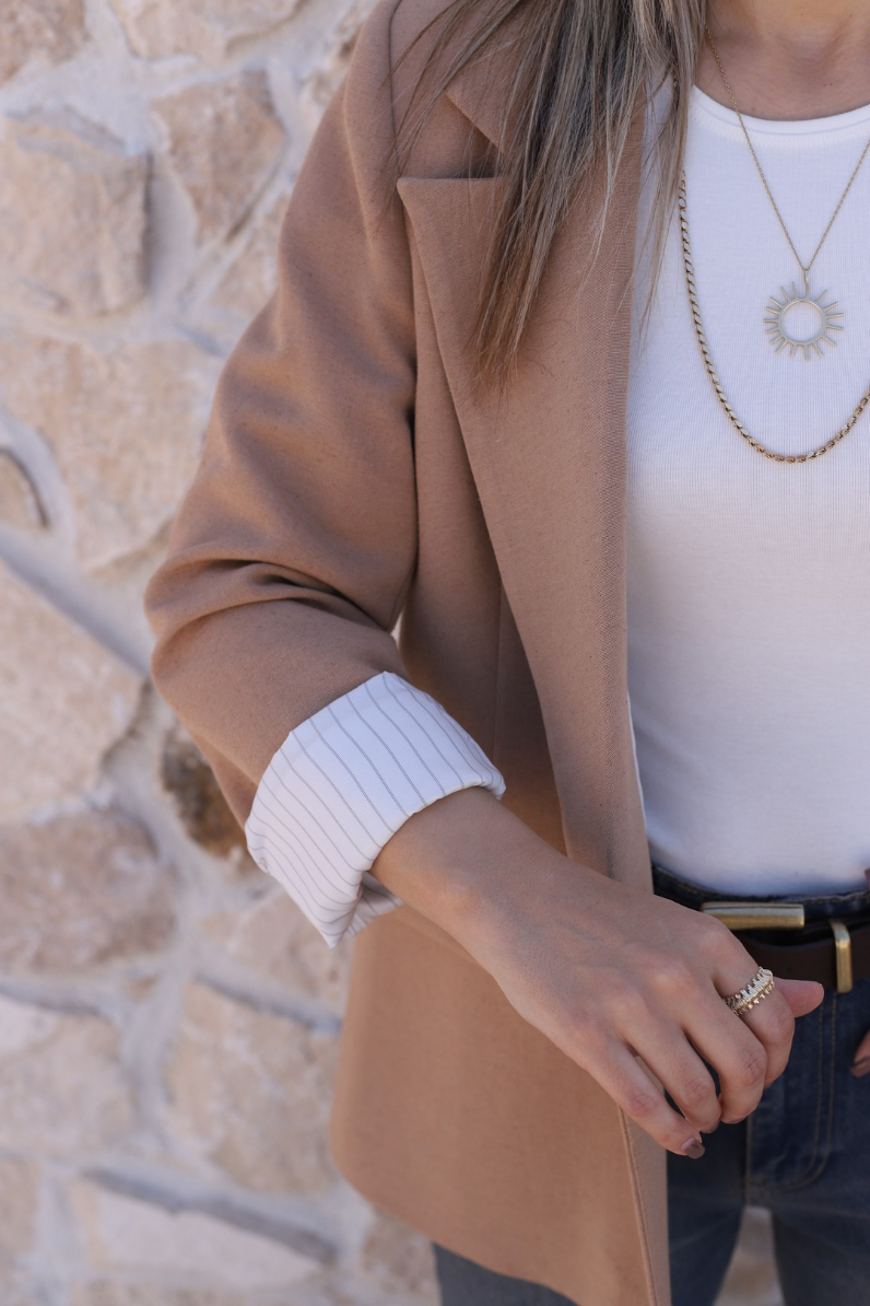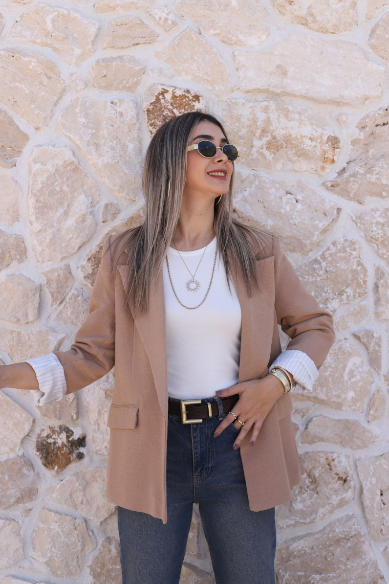 CAMEL KETEN ÇİZGİLİ ASTARLI BLAZER