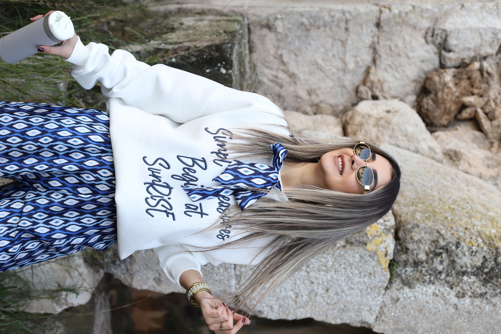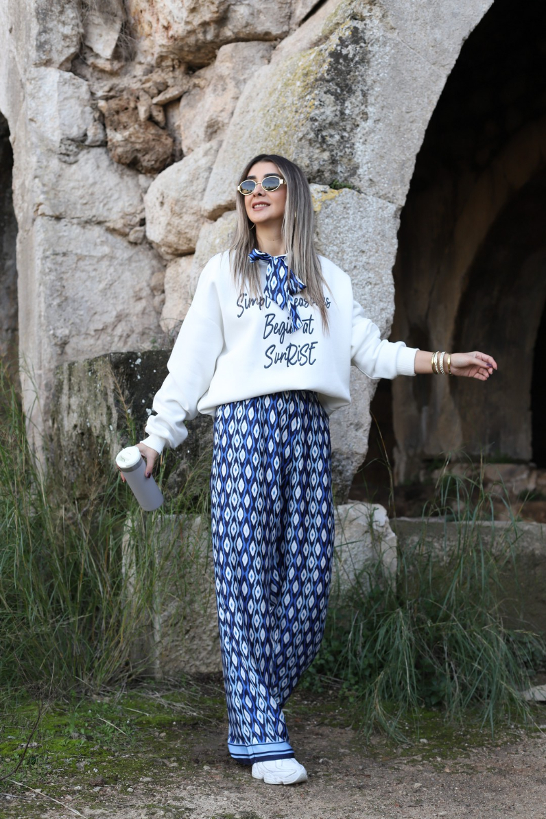 EKRU MAVİ FULAR DETAYLI SWEATSHİRT