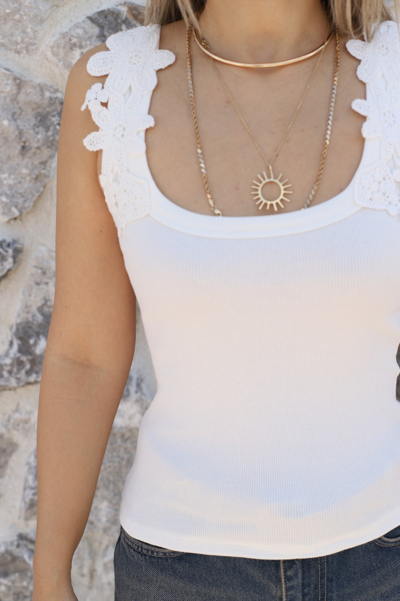 EKRU OMUZLARI DANTELLİ FİTİLLİ ATLET