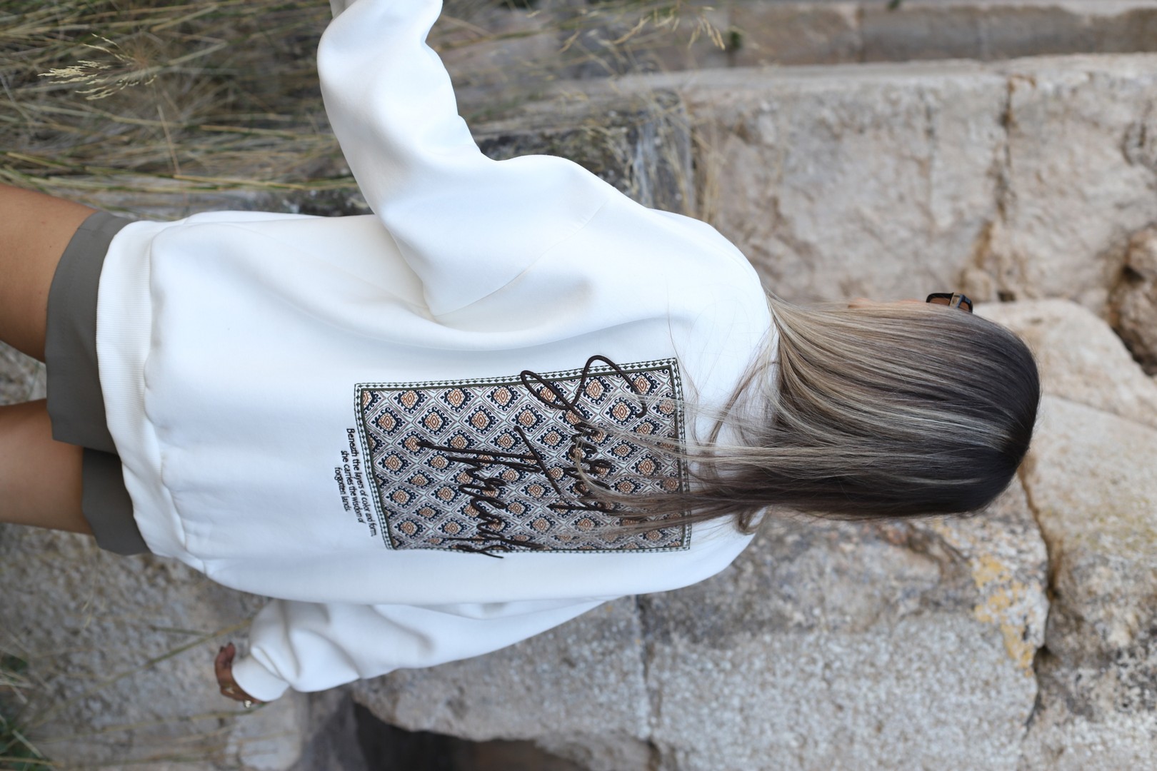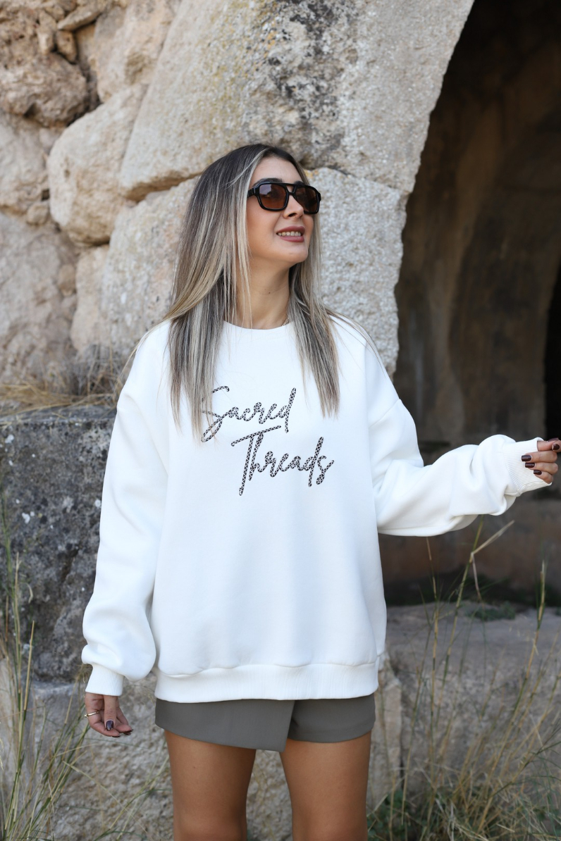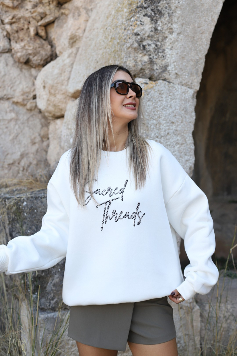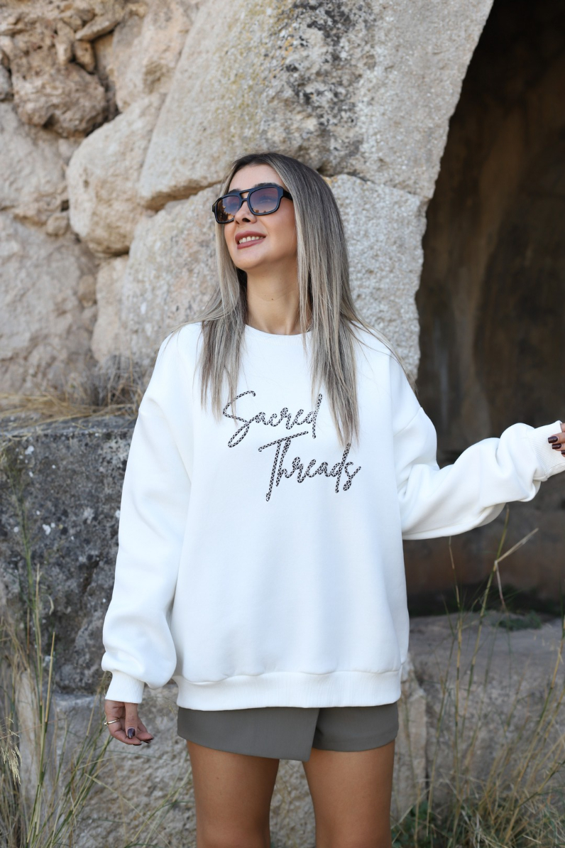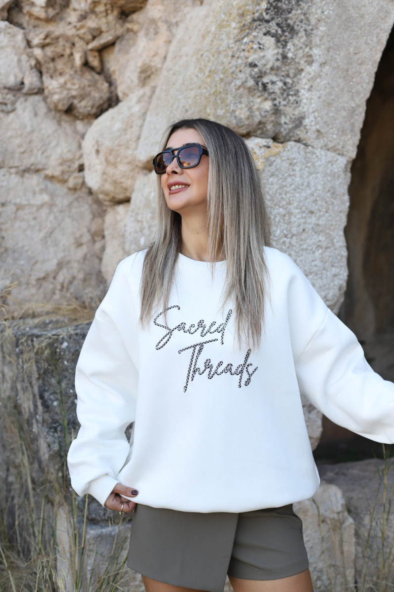 EKRU SIRT NAKIŞLI SWEATSHİRT
