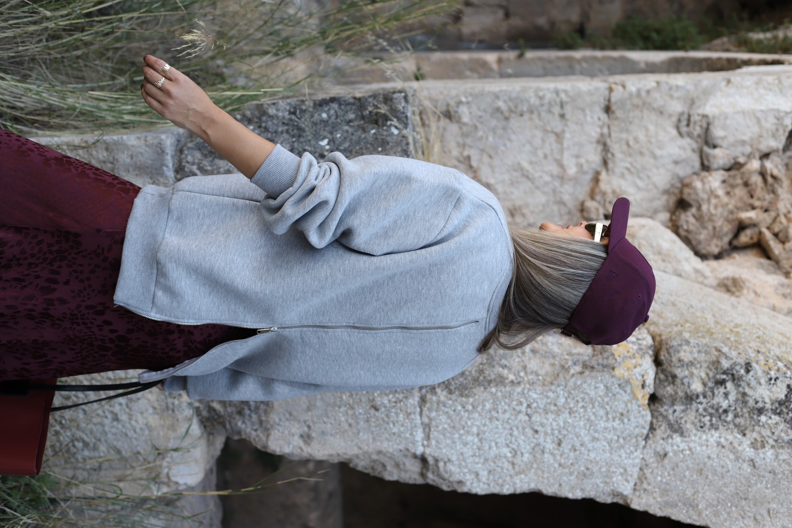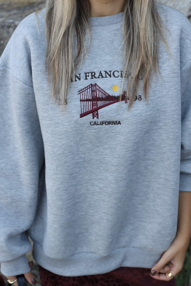 GRİ BASKILI SIRT FERMUAR DETAY SWEATSHİRT