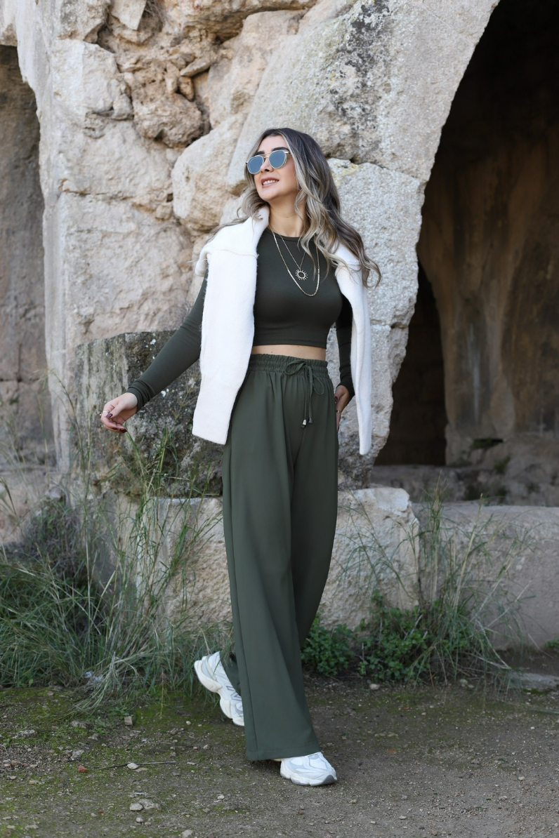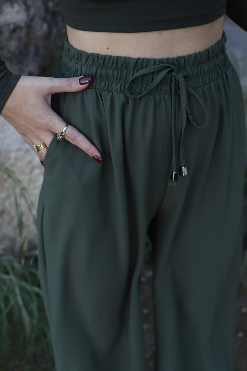 HAKİ BELİ LASTİKLİ PALAZZO ALT