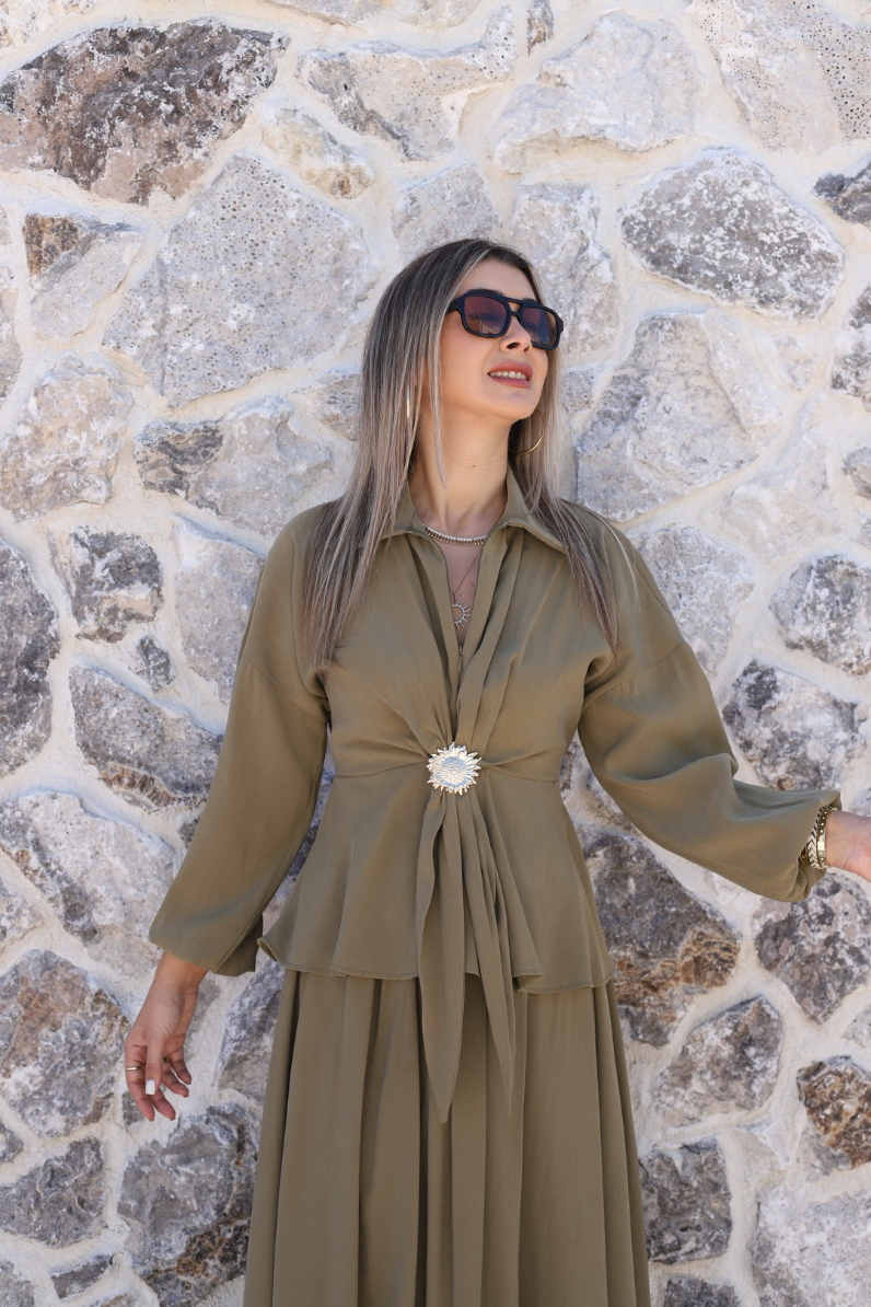 HAKİ GÜNEŞ TOKALI ETEKLİ TAKIM