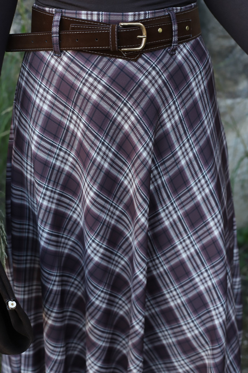 KAHVE-BEJ EKOSE DESEN KEMERLİ ETEK