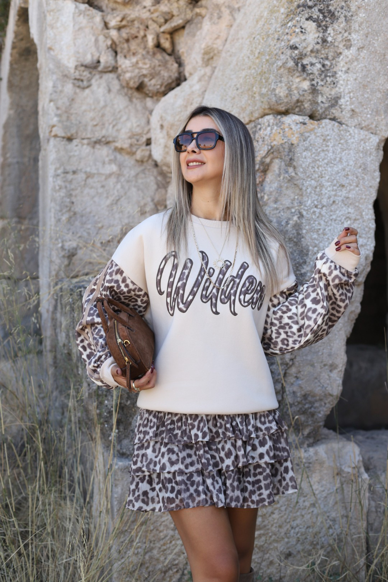 KAHVE LEOPAR DESENLİ KAT KAT ETEK