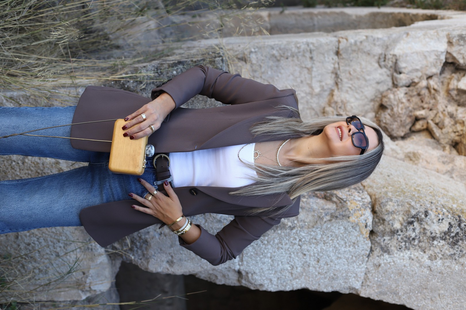 KAHVE PREMİUM NERVÜR DETAY BLAZER
