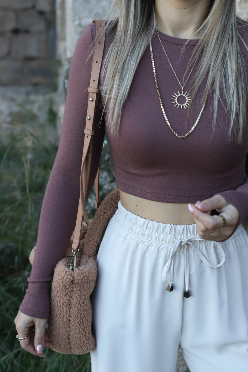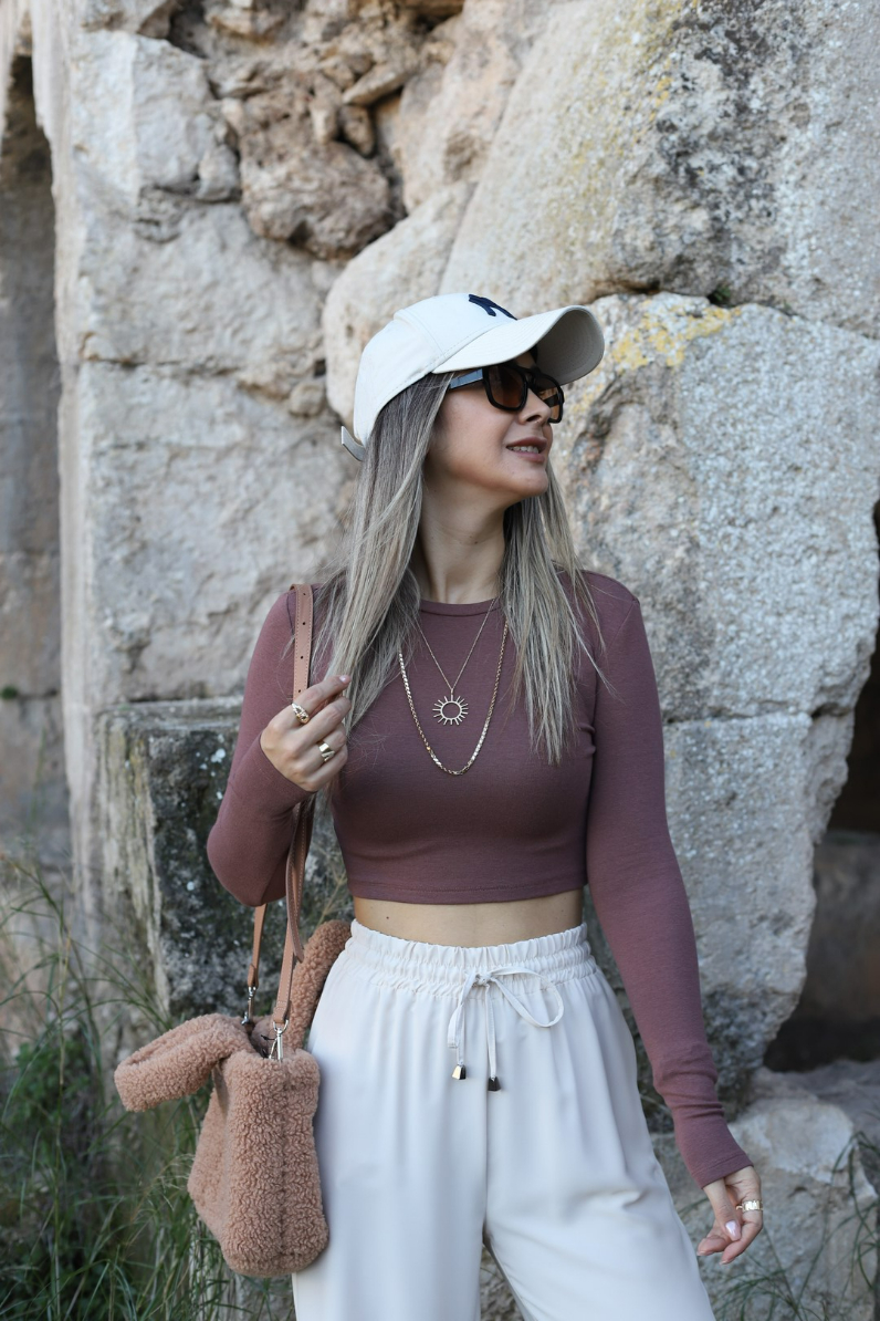 KAHVE UZUN KOLLU CROP TOP