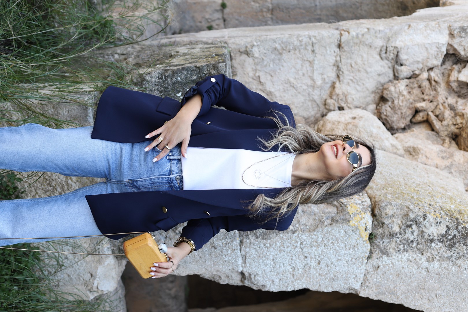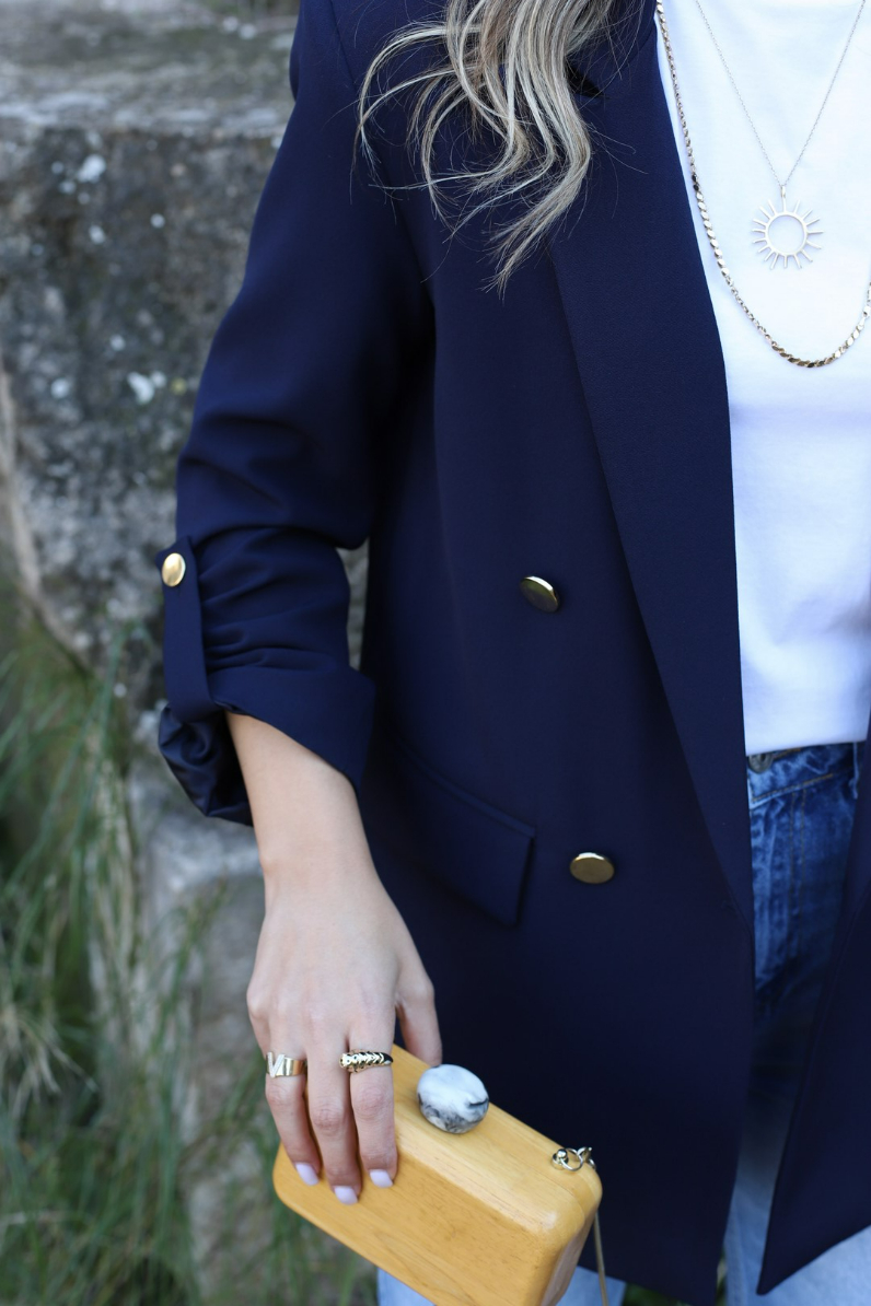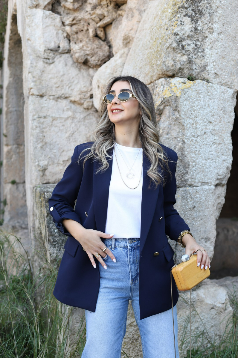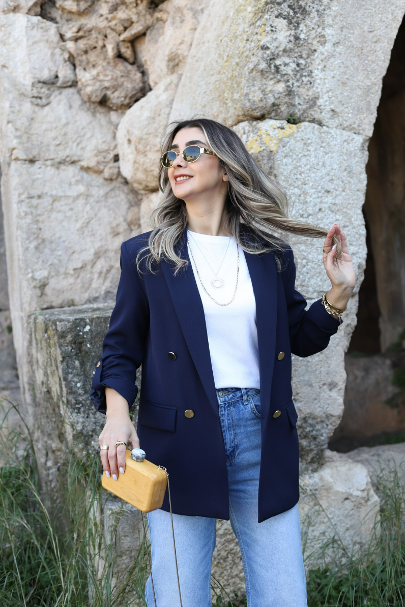 LACİVERT KOLU KATLI GOLD DÜĞMELİ BLAZER