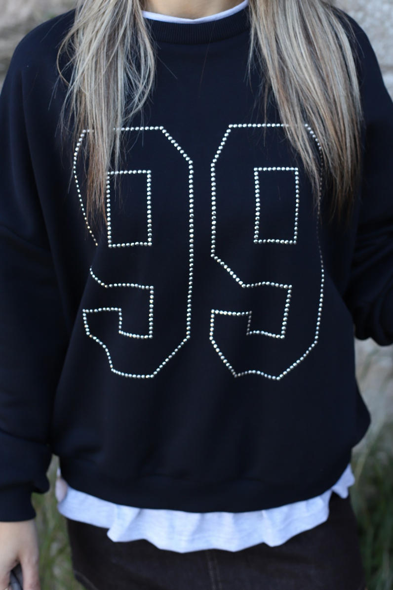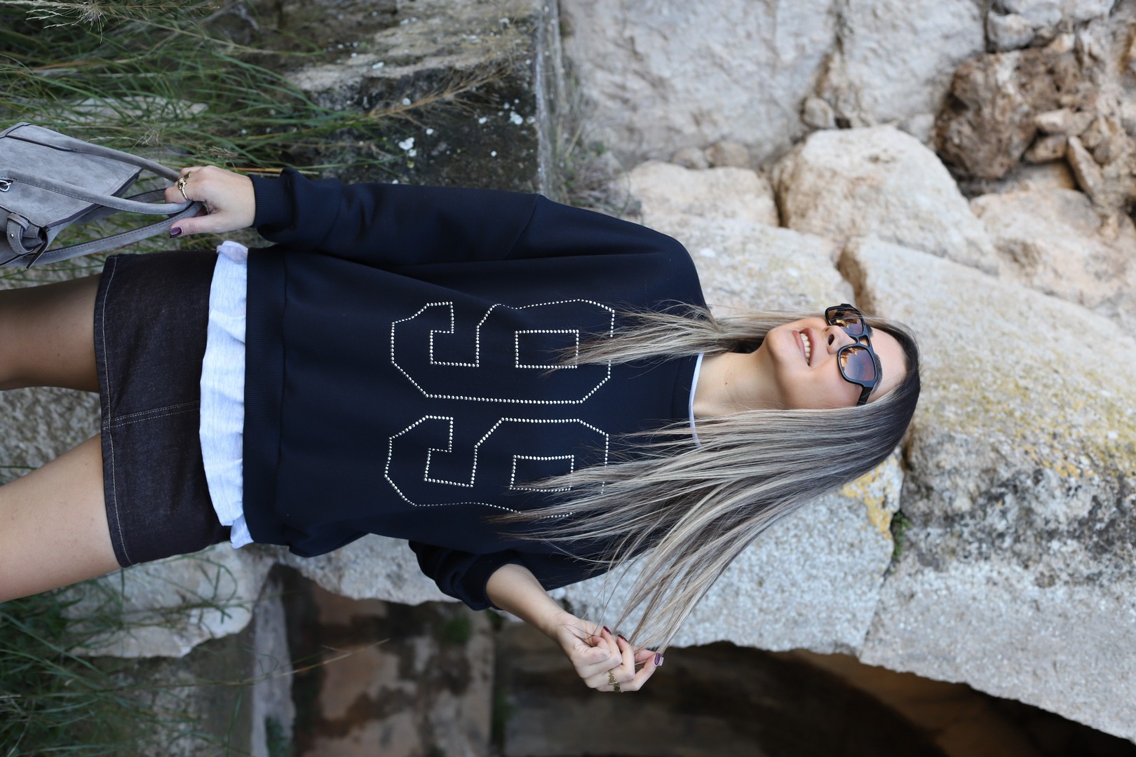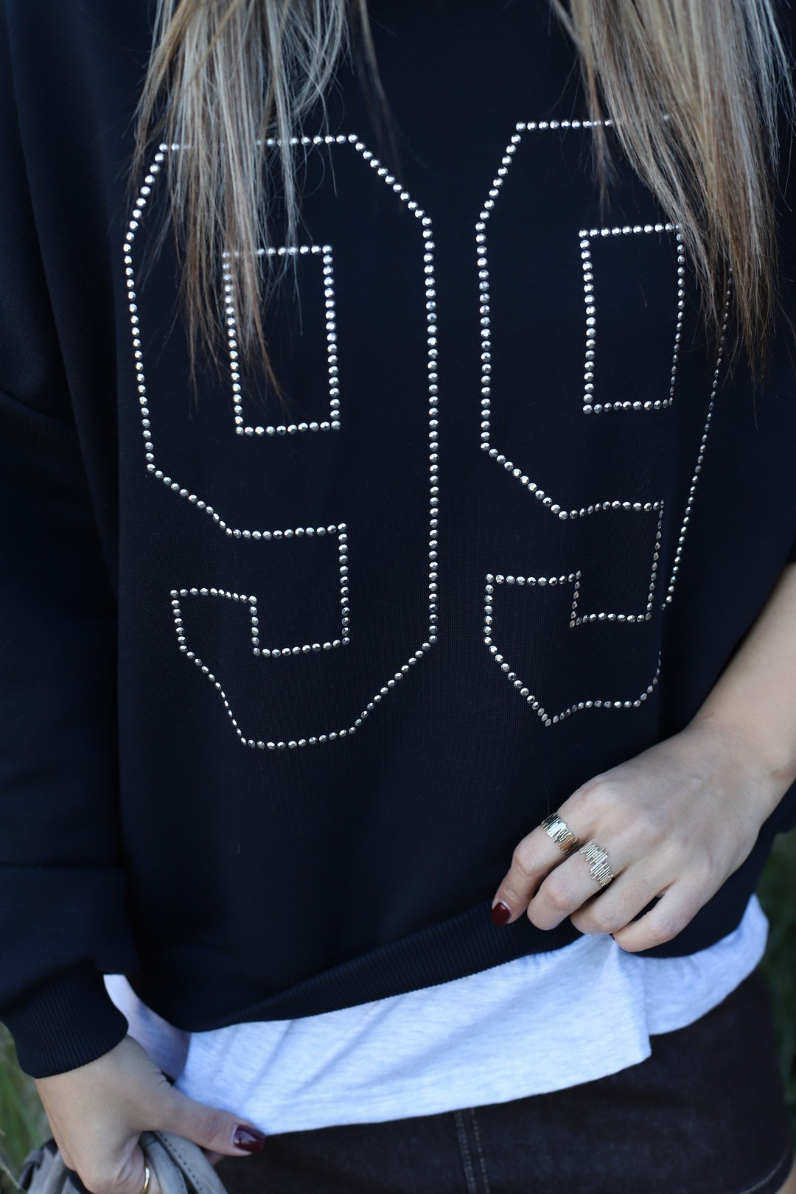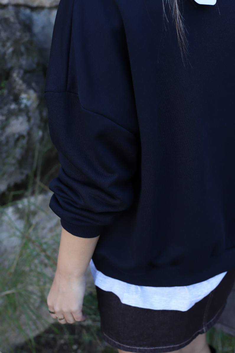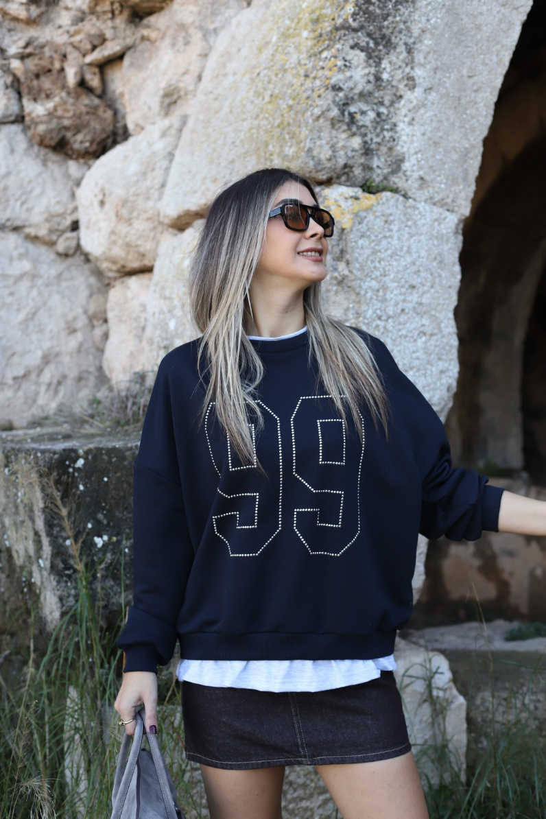 LACİVERT TSHİRT DETAYLI TAŞLI SWEATSHİRT