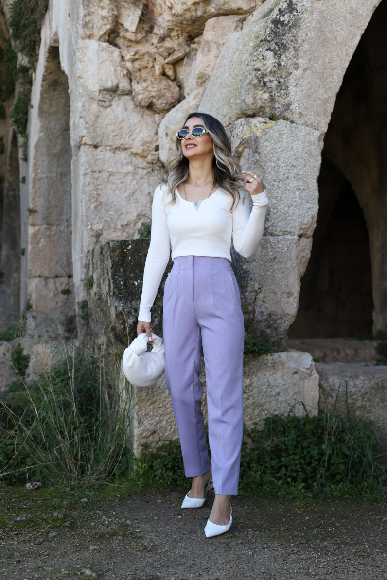 LİLA ÖNÜ FLATOLU KUMAŞ PANTOLON