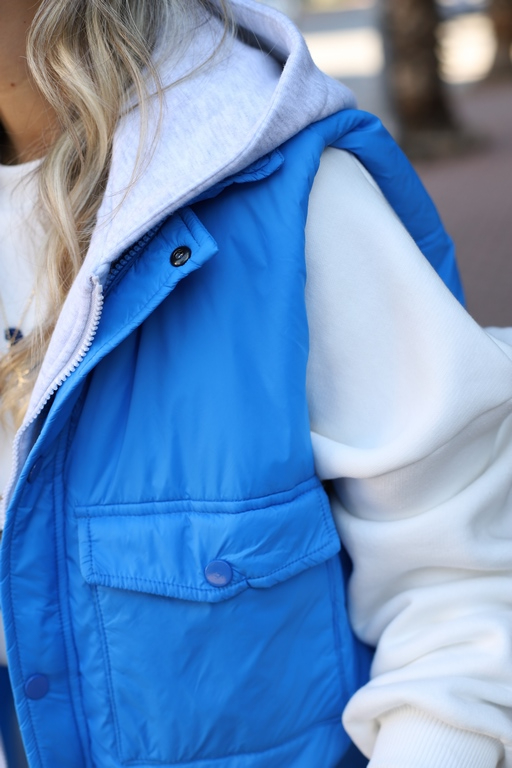 MAVİ GARNİLİ KAPŞONLU YELEK