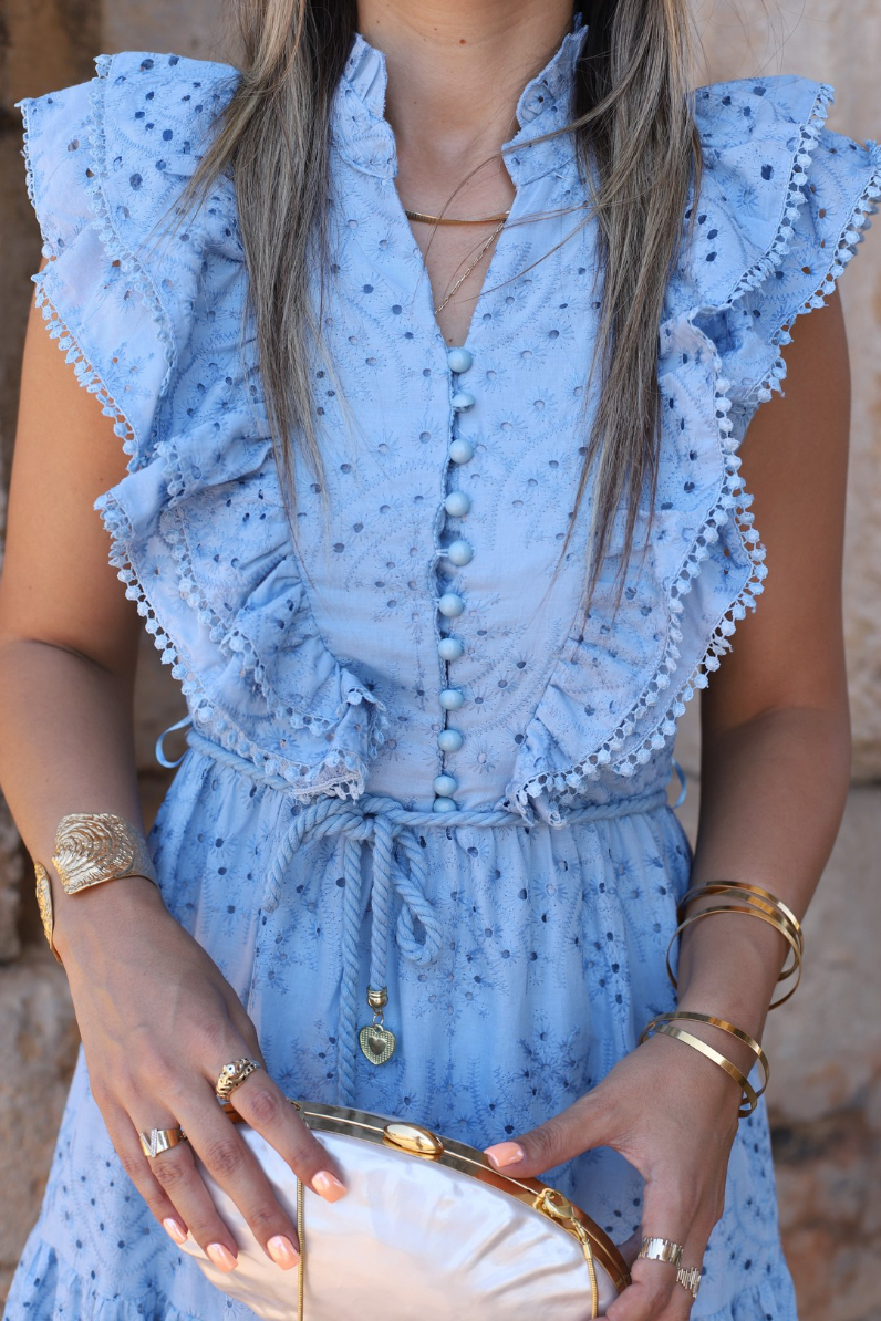 MAVİ ÖNÜ FIRFIRLI SIFIR KOL FİSTO ELBİSE