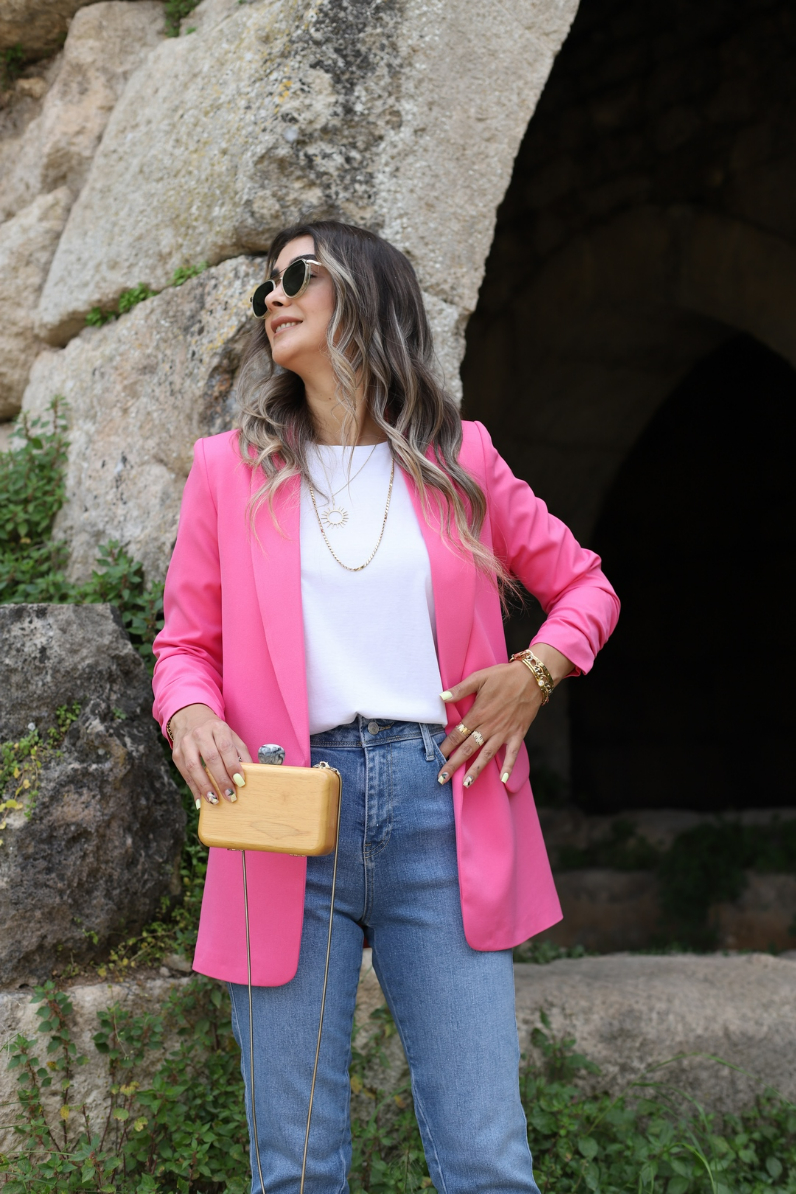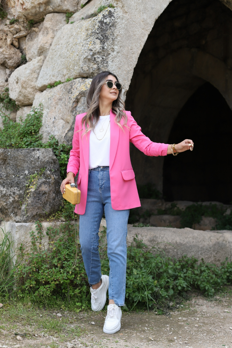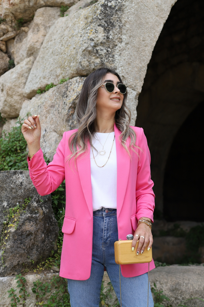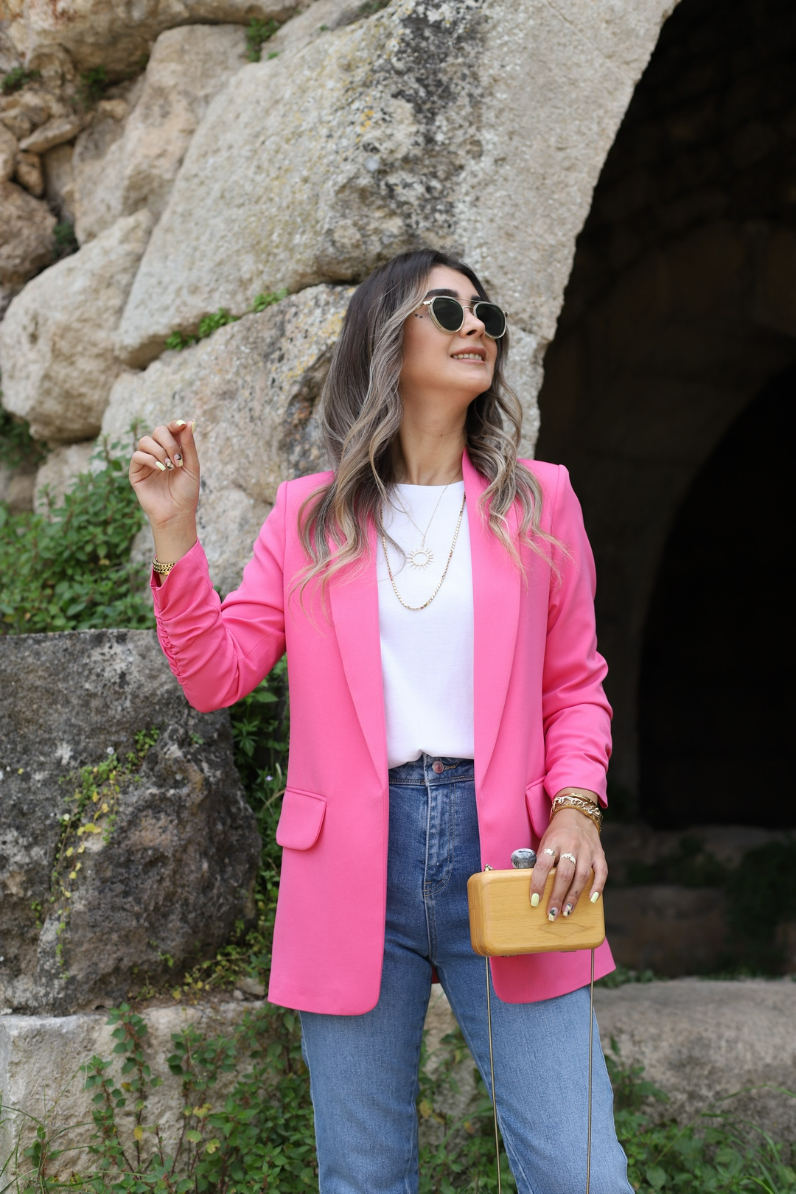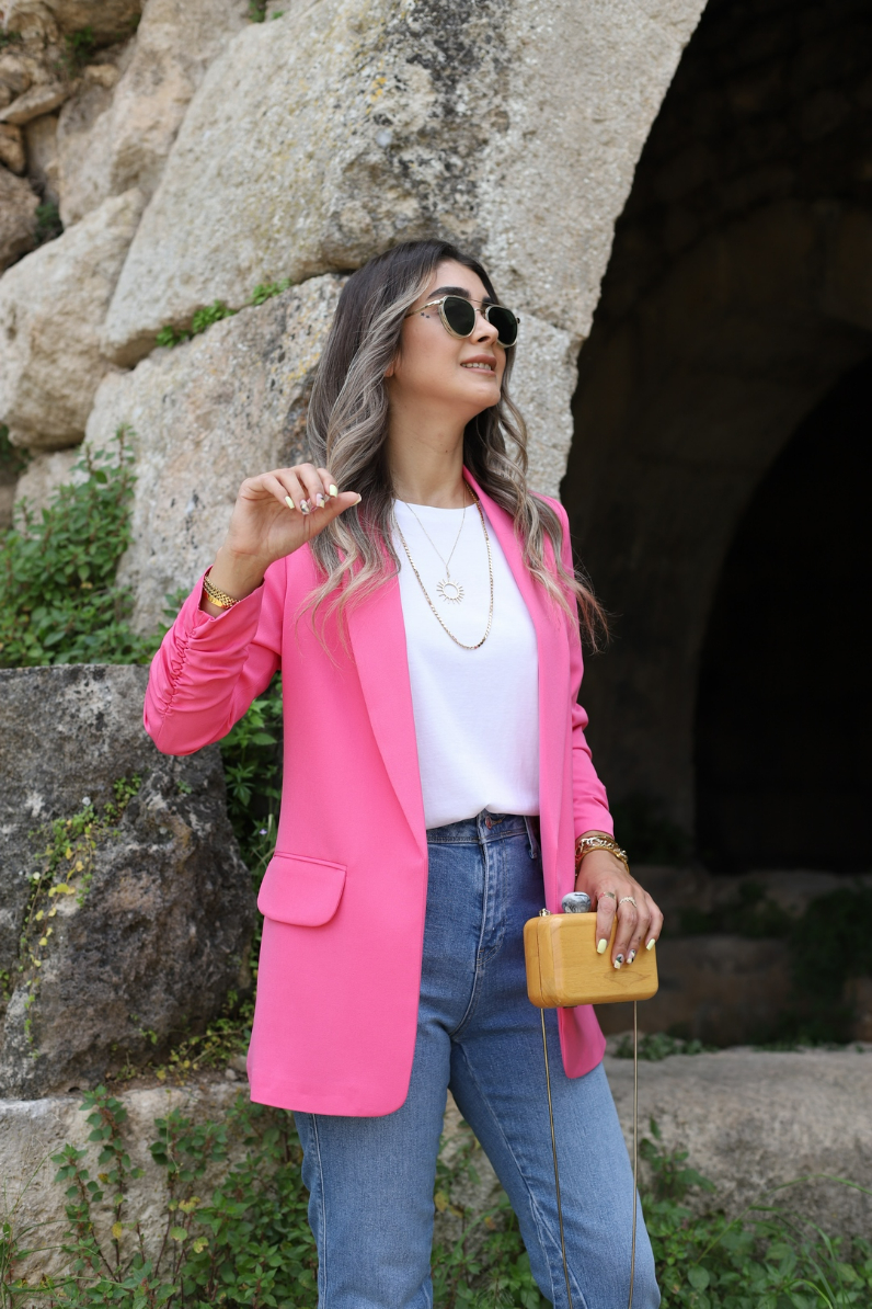 PEMBE KOL BÜZGÜ DETAY BLAZER