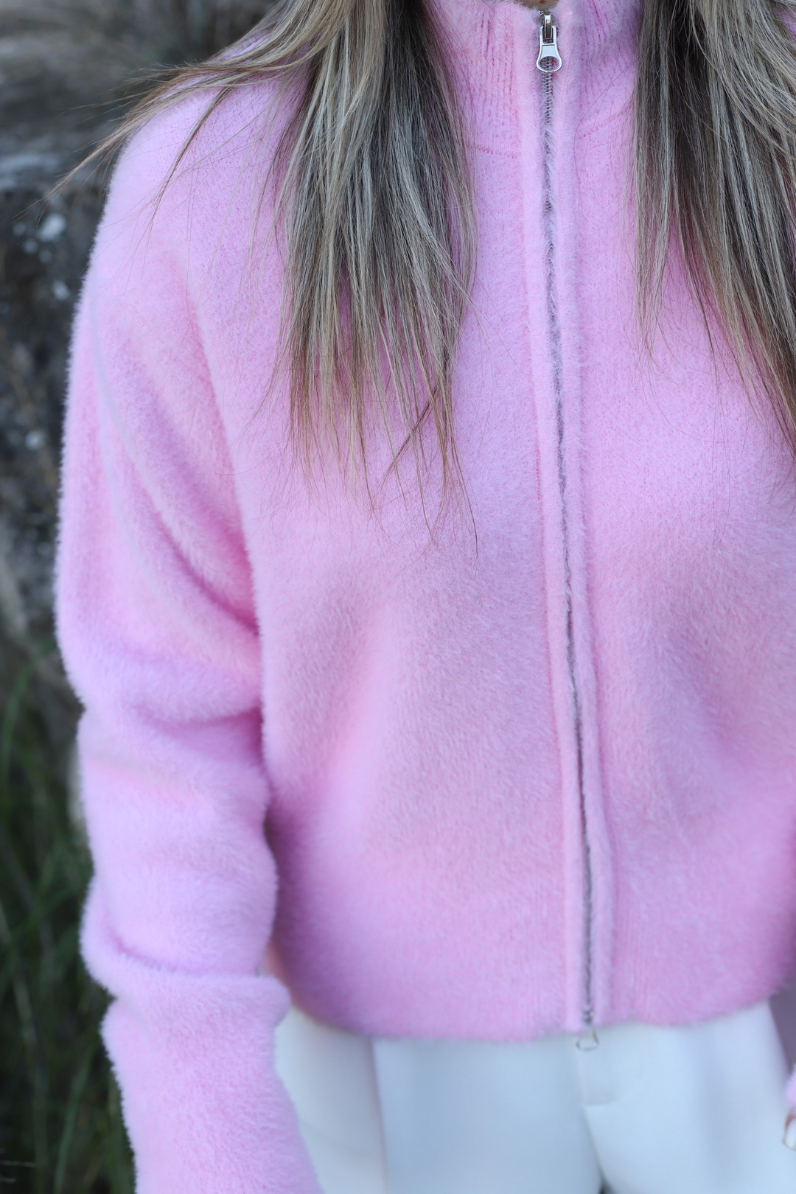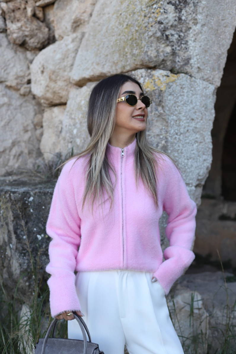 PEMBE STANDART BEDEN FERMUARLI TÜYLÜ HIRKA