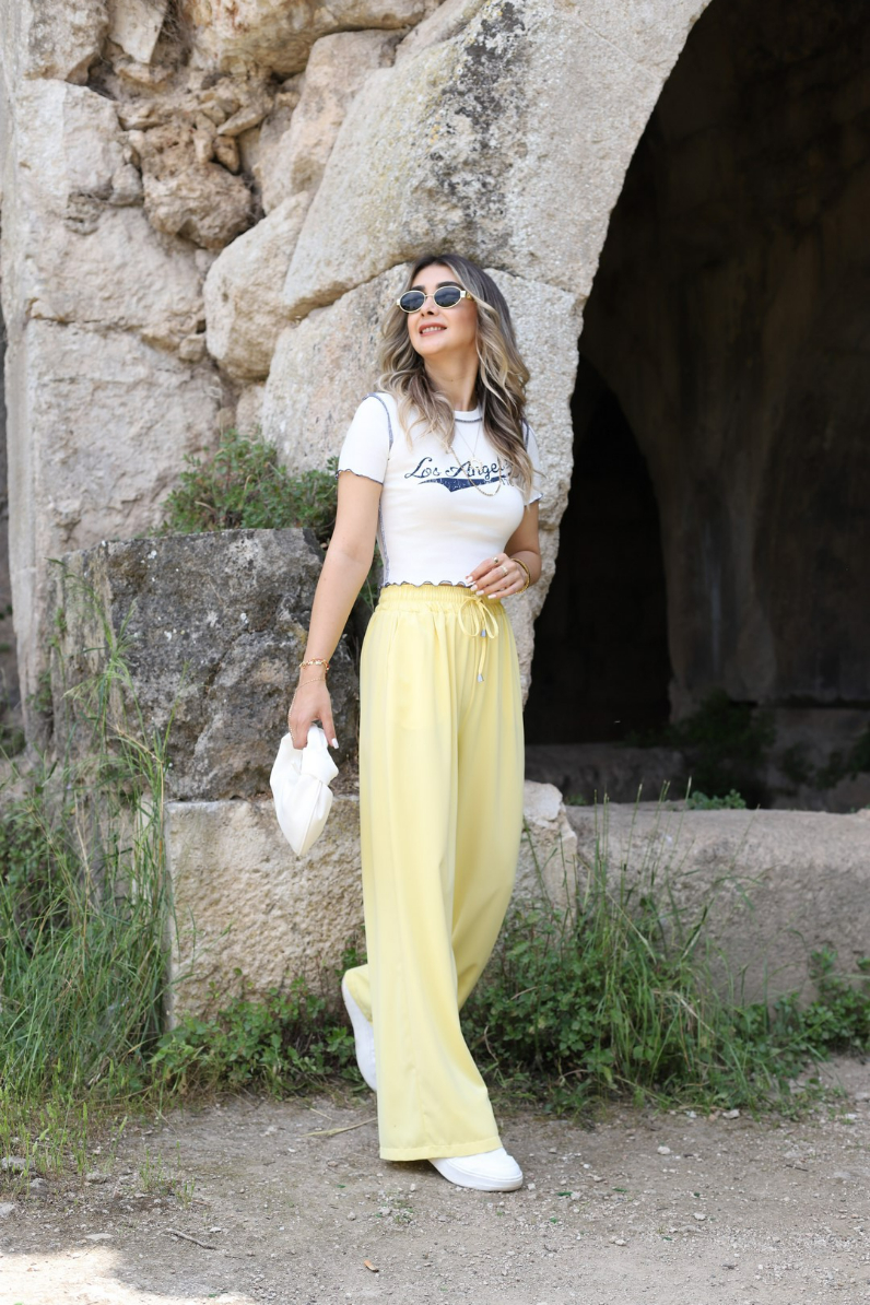 SARI BELİ LASTİKLİ PALAZZO ALT