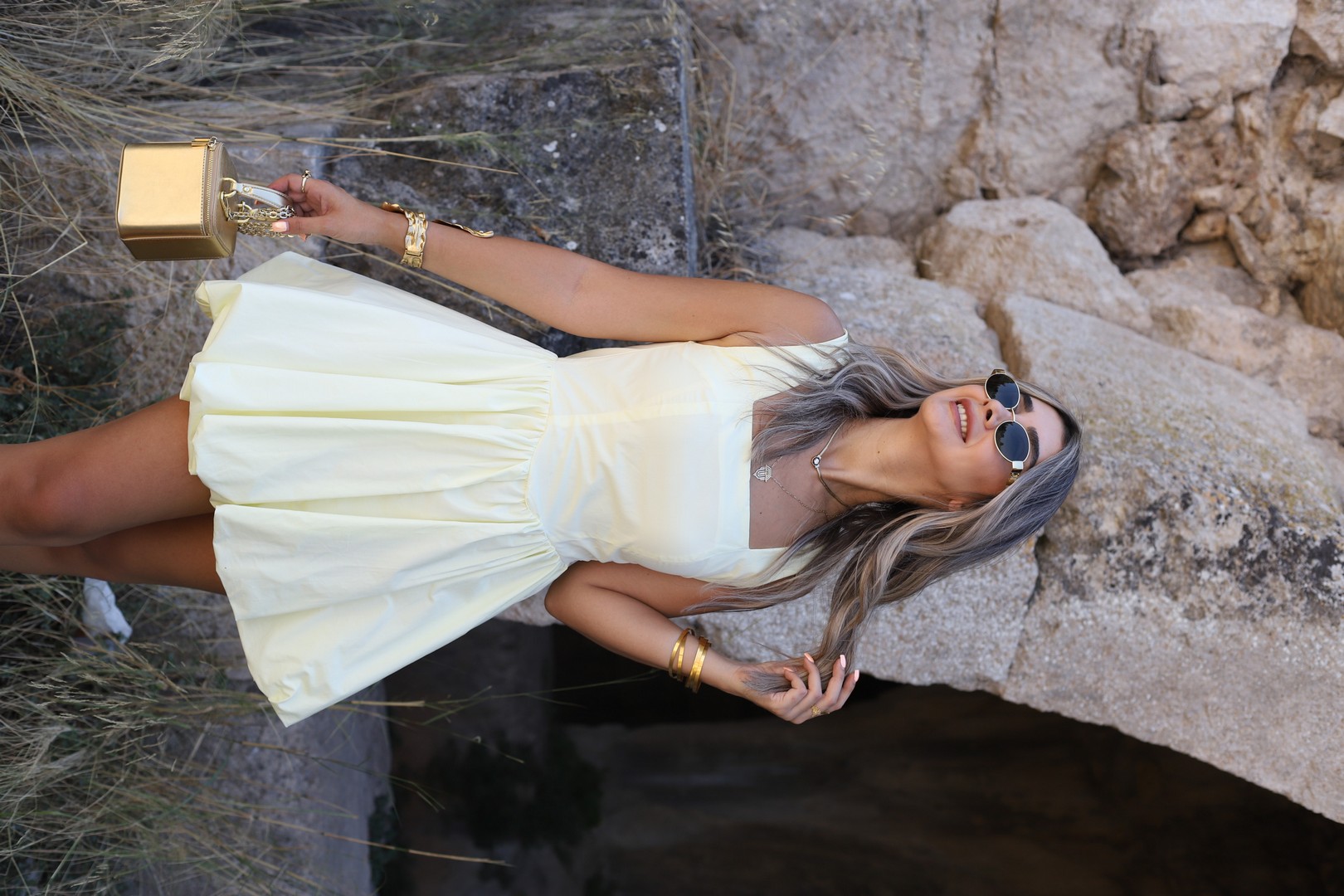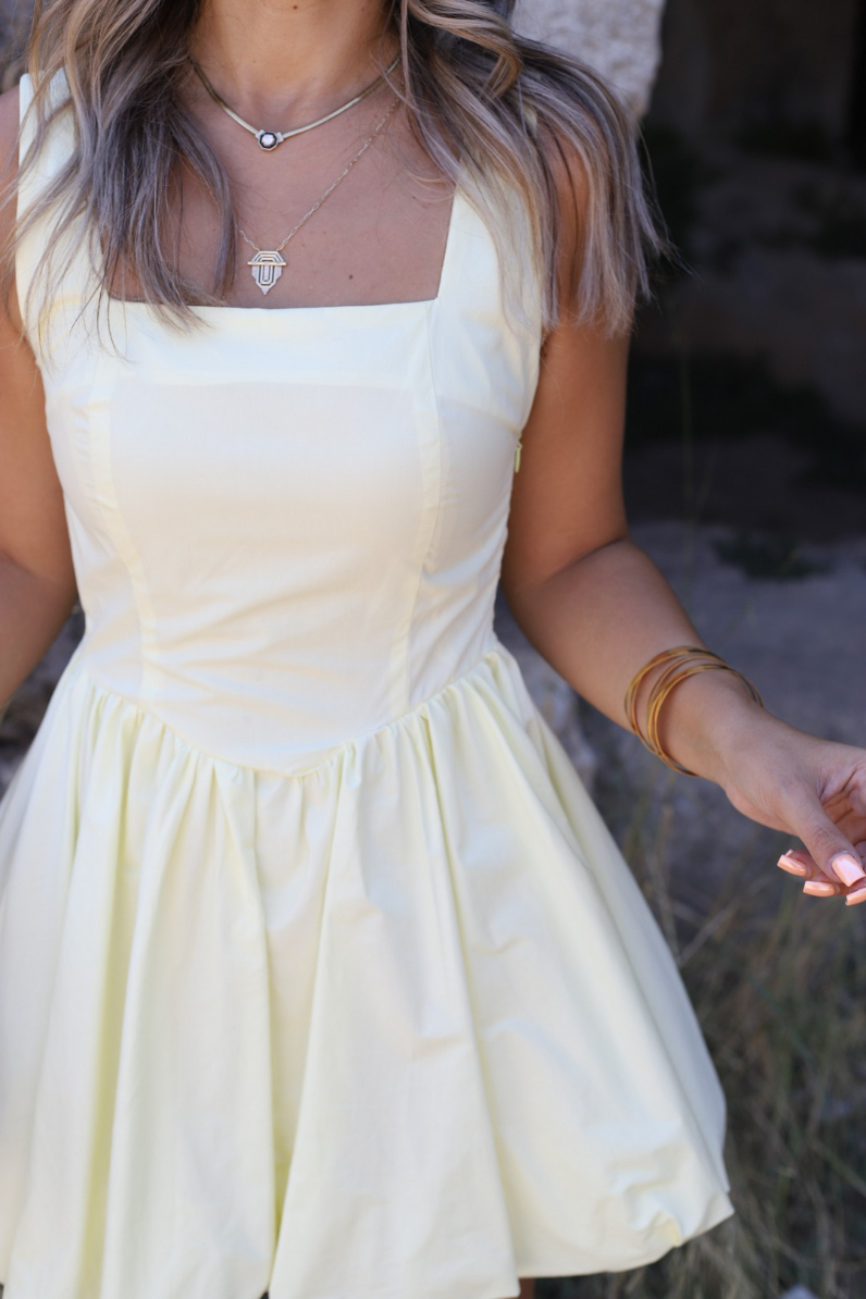 SARI KALIN ASKILI MİNİ BALON ELBİSE