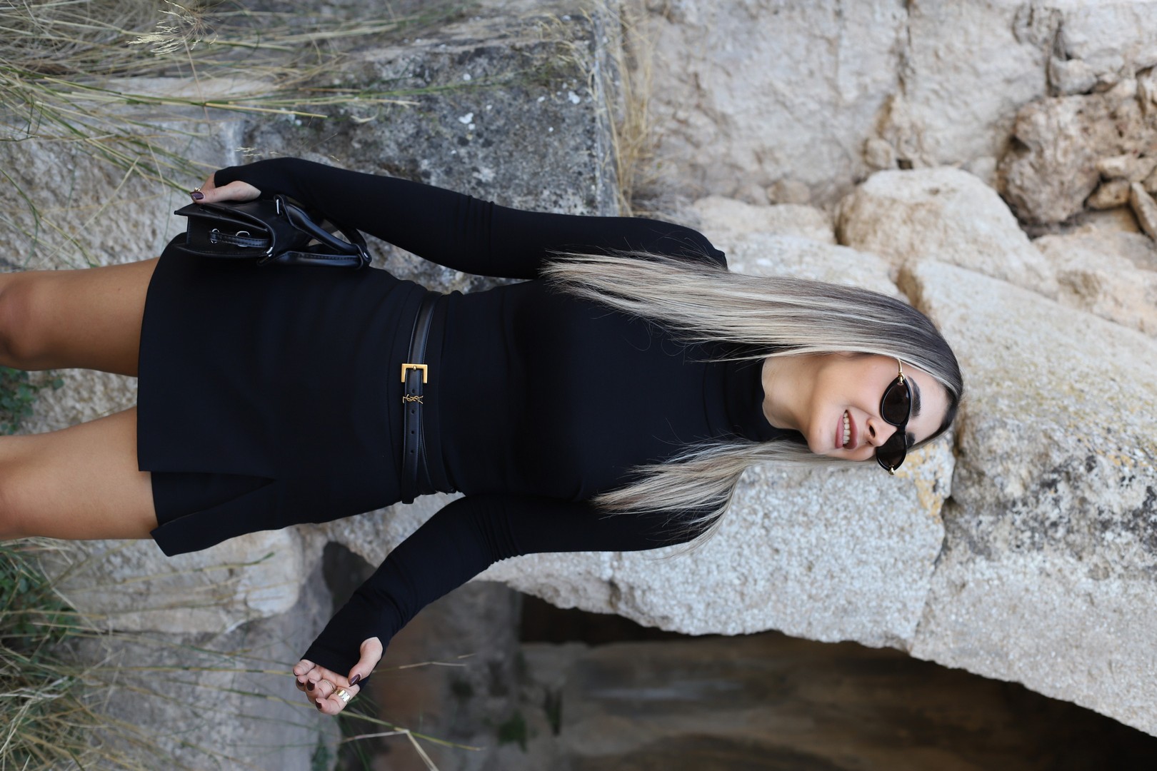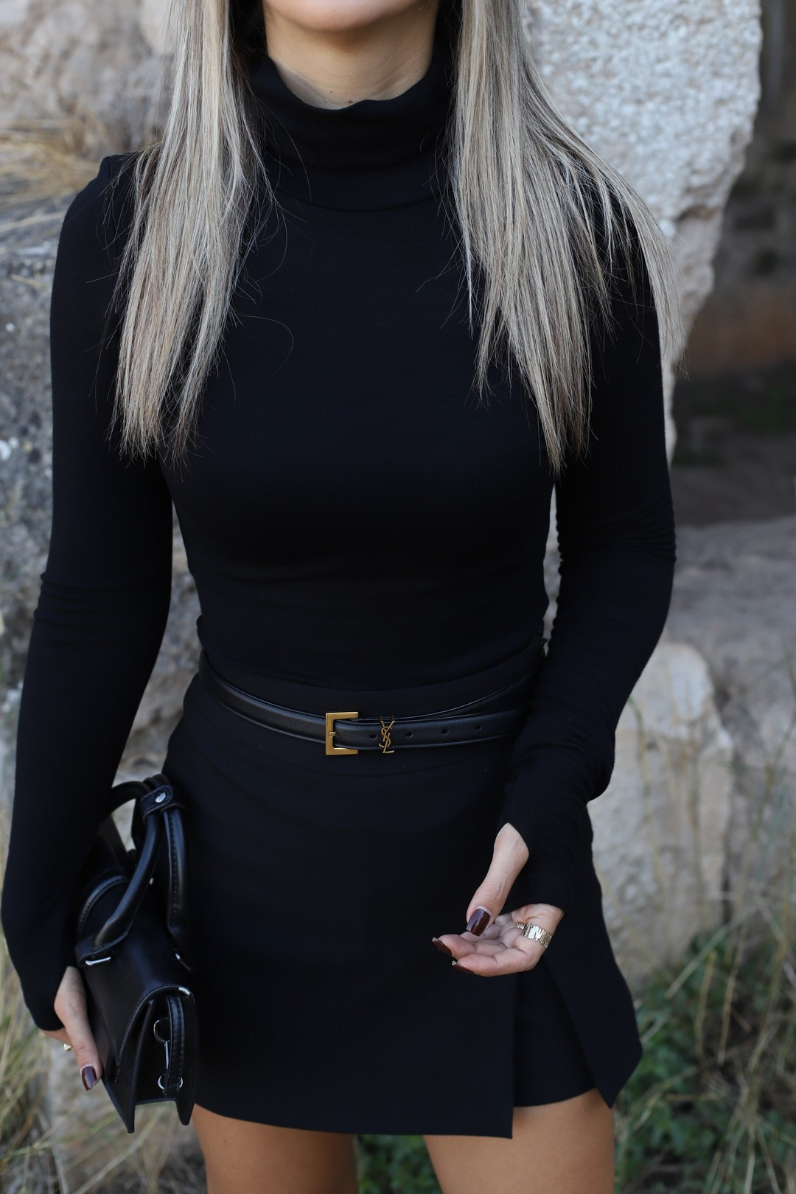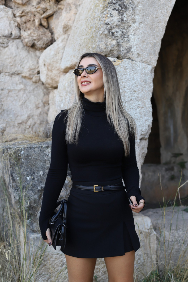 SİYAH BALIKÇI YAKA KOLU YIRTMAÇLI BLUZ