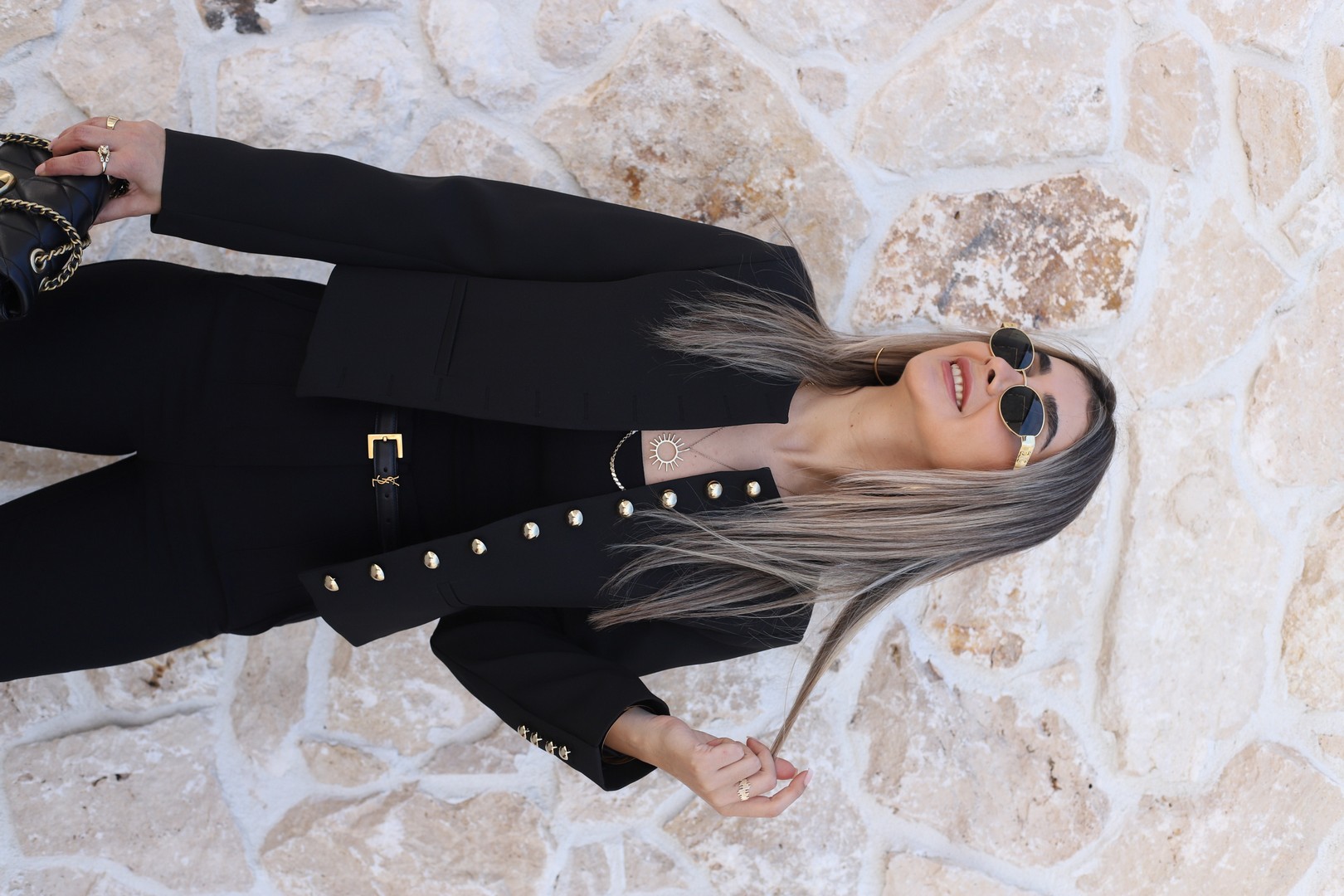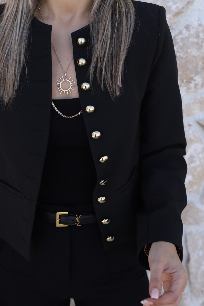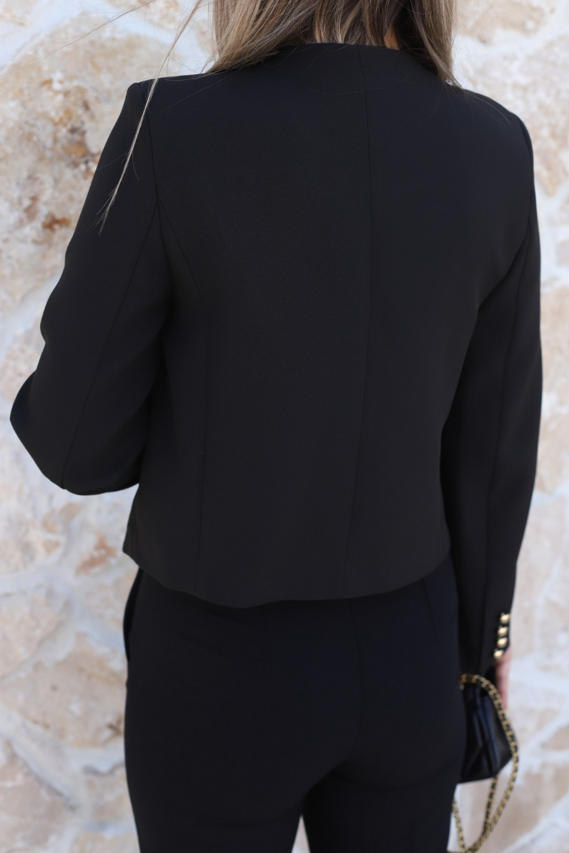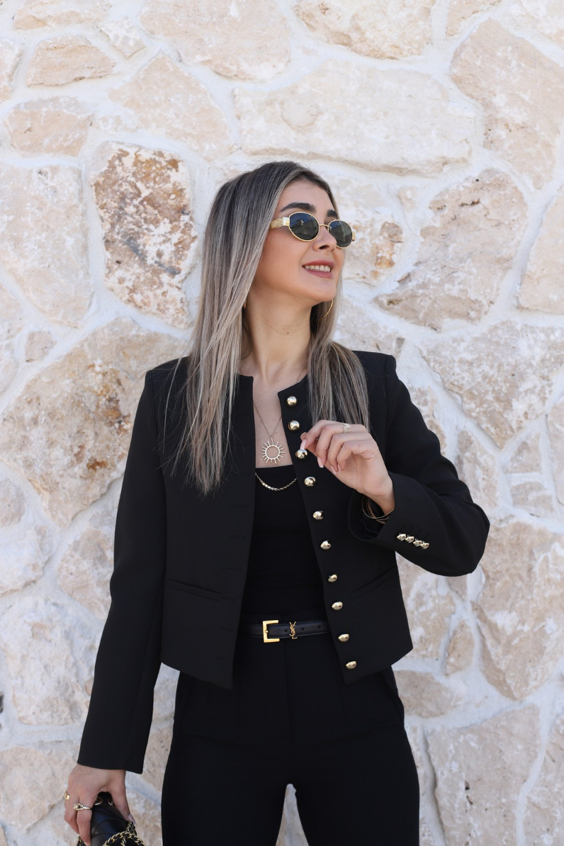 SİYAH BİSİKLET YAKA GOLD DÜĞMELİ KISA CEKET