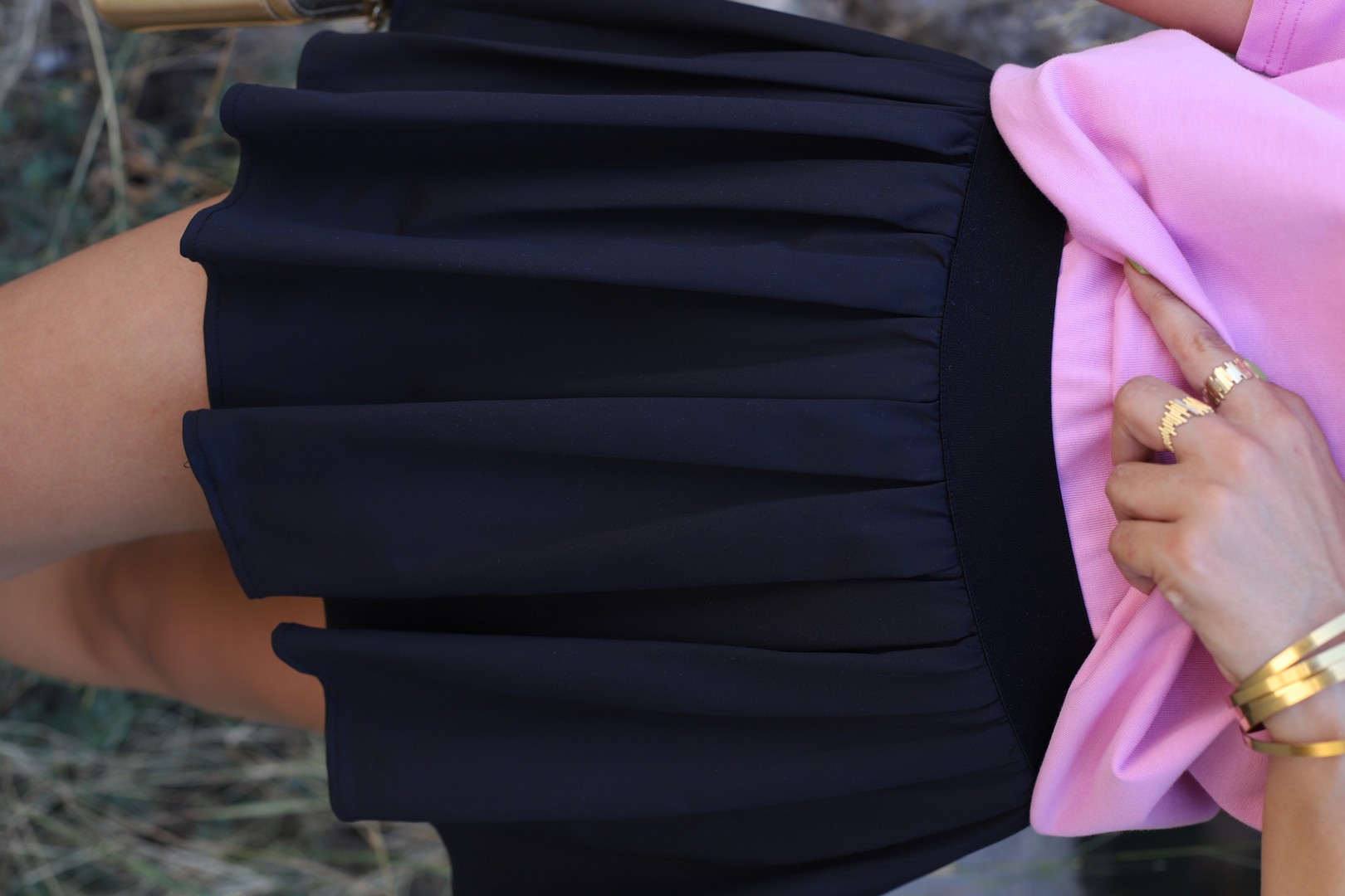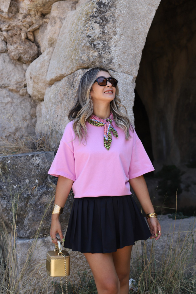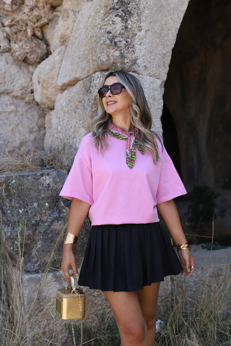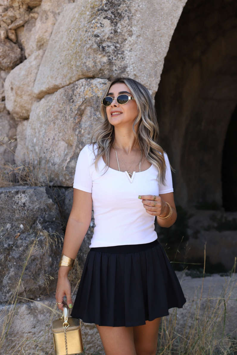 SİYAH İÇİ ŞORTLU BELİ LASTİKLİ PİLELİ MİNİ ETEK