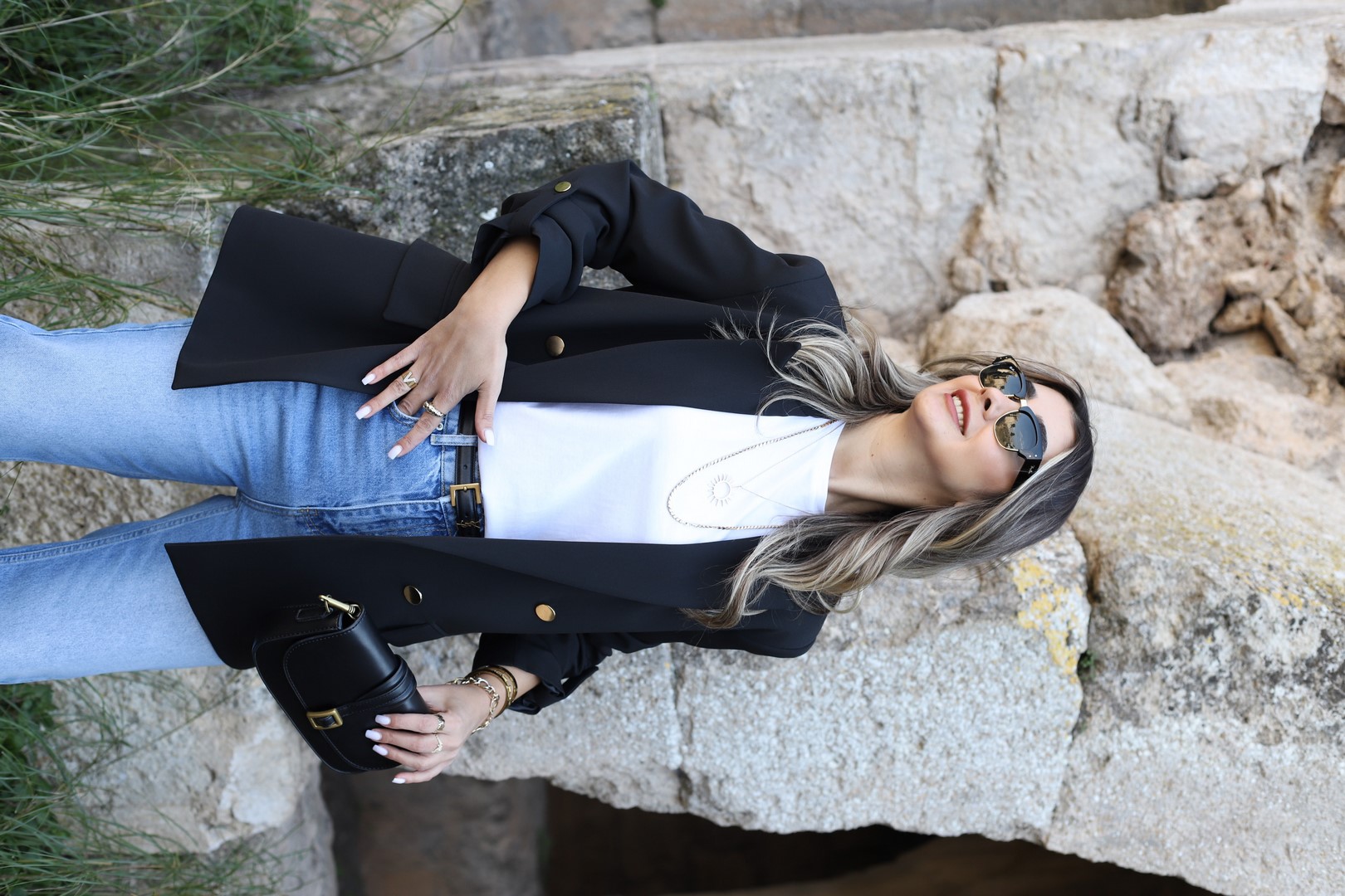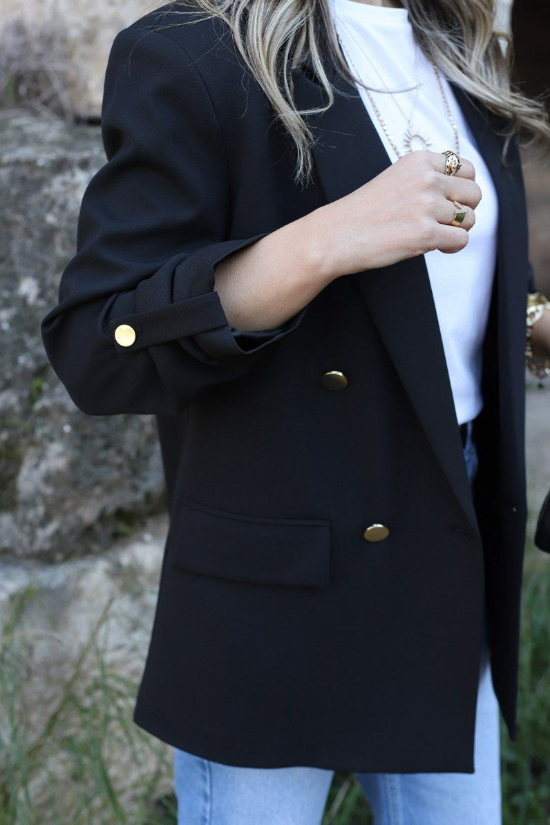 SİYAH KOLU KATLI GOLD DÜĞMELİ BLAZER