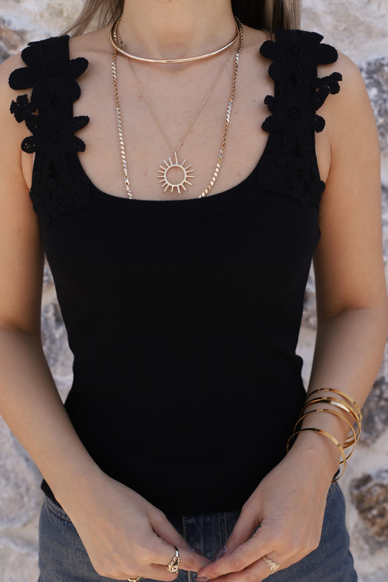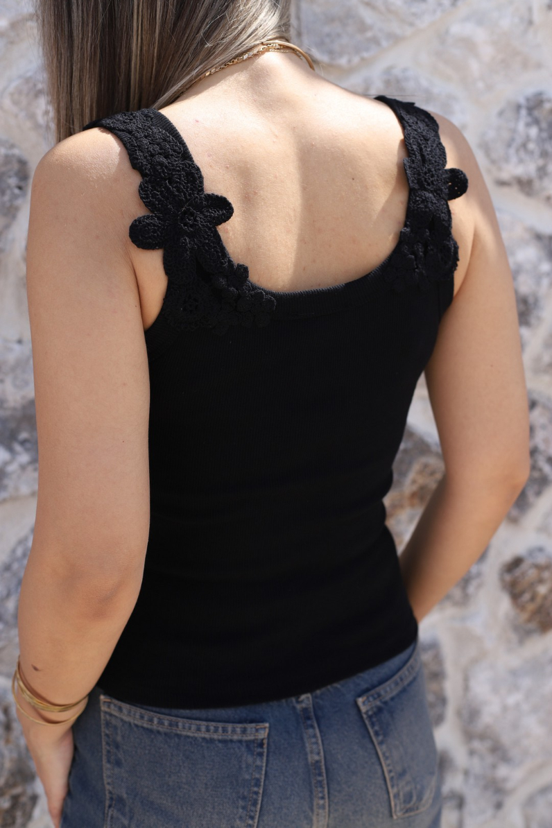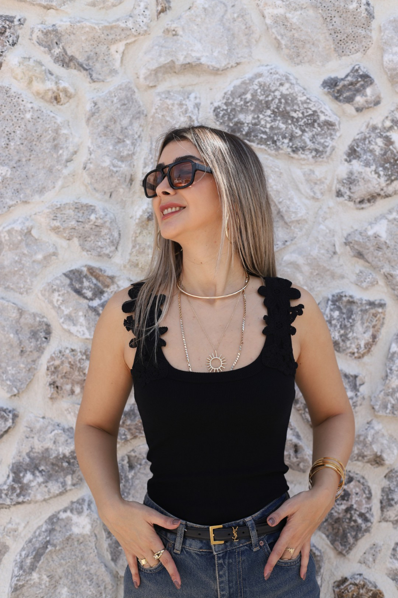 SİYAH OMUZLARI DANTELLİ FİTİLLİ ATLET