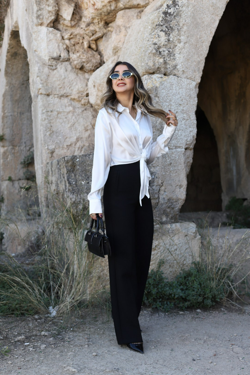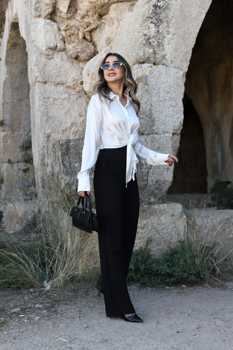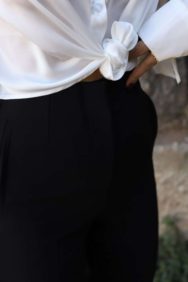 SİYAH ÖNÜ FLATOLU KUMAŞ PALAZZO