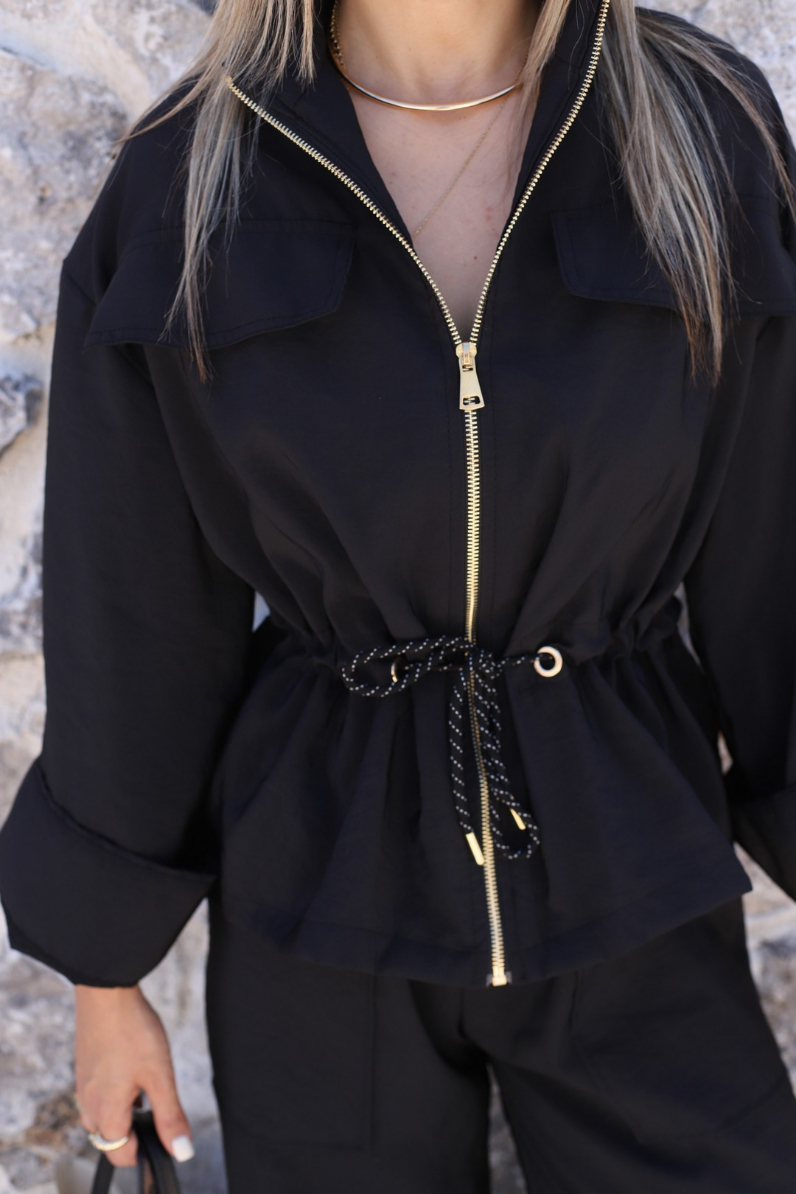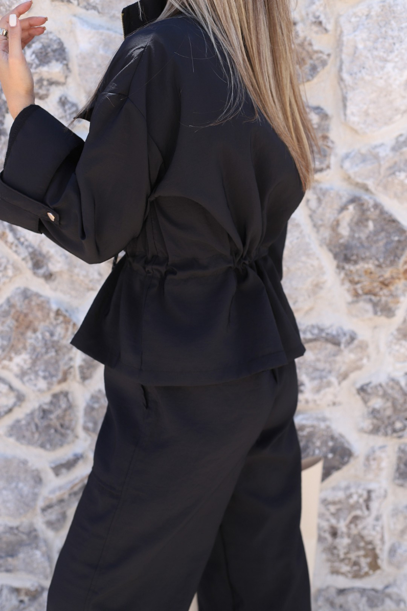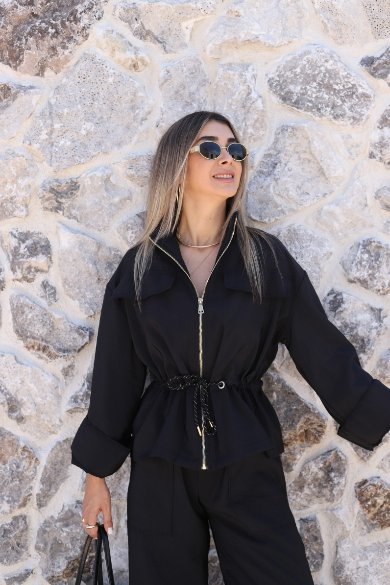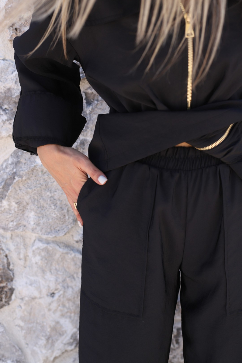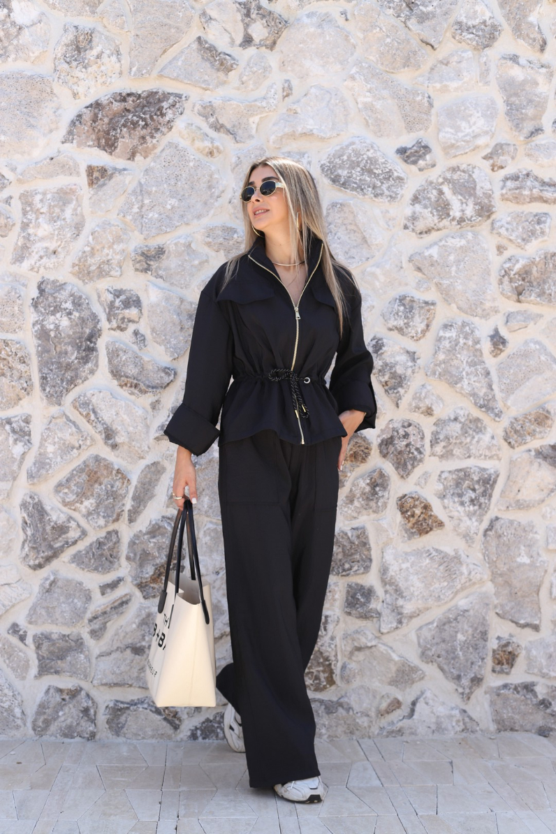 SİYAH PARAŞÜT KUMAŞ ÜST FERMUARLI TAKIM