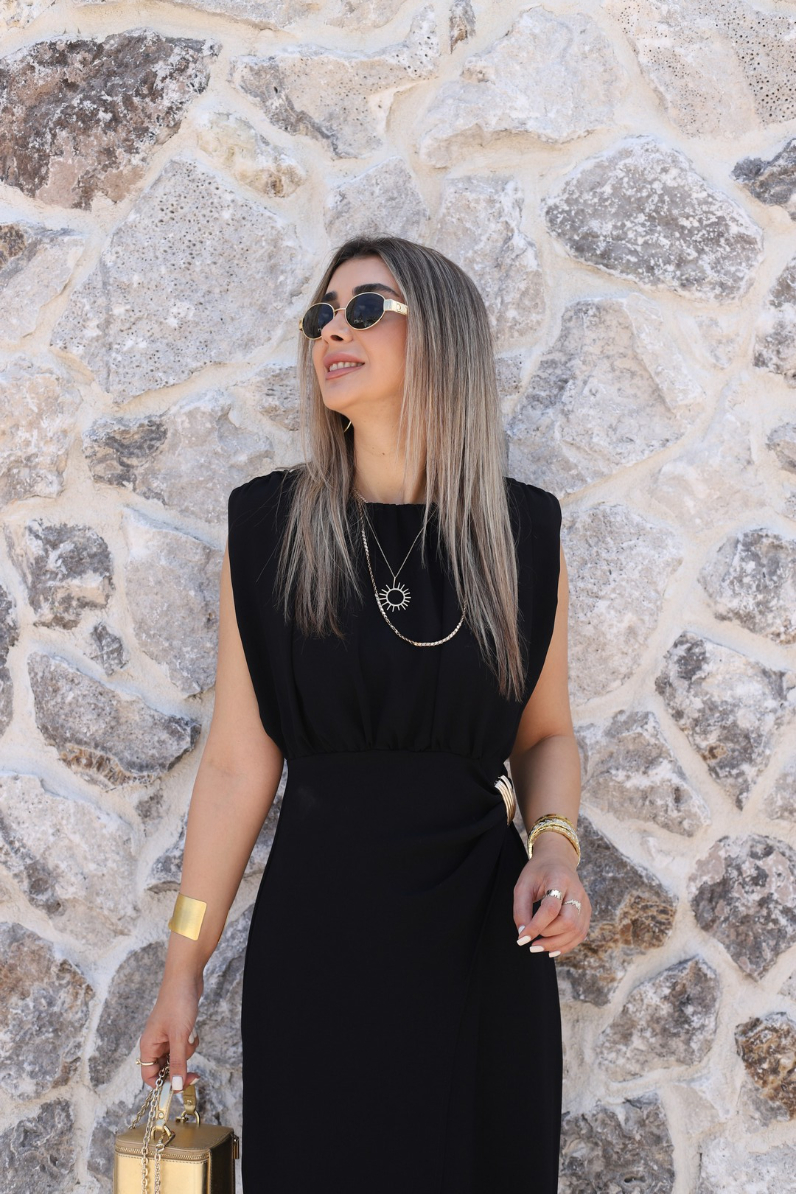 SİYAH SIFIR KOL ÇİFT TOKALI ELBİSE