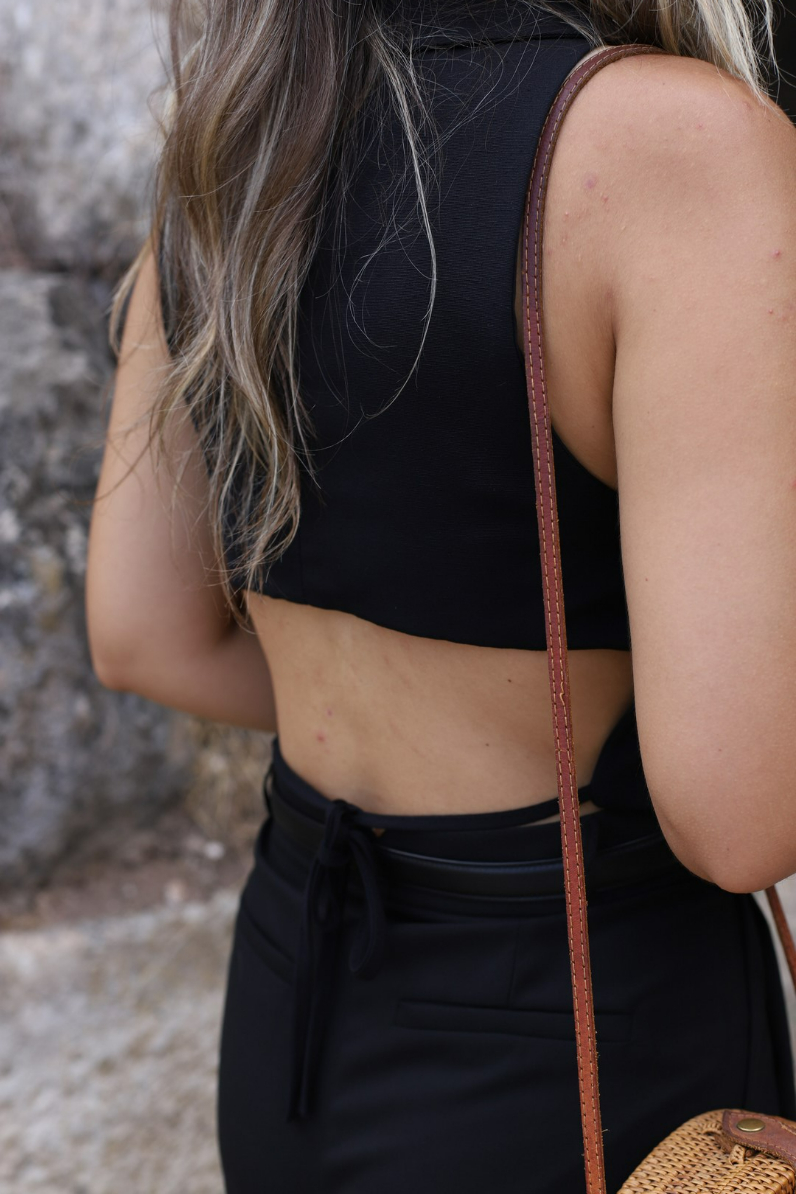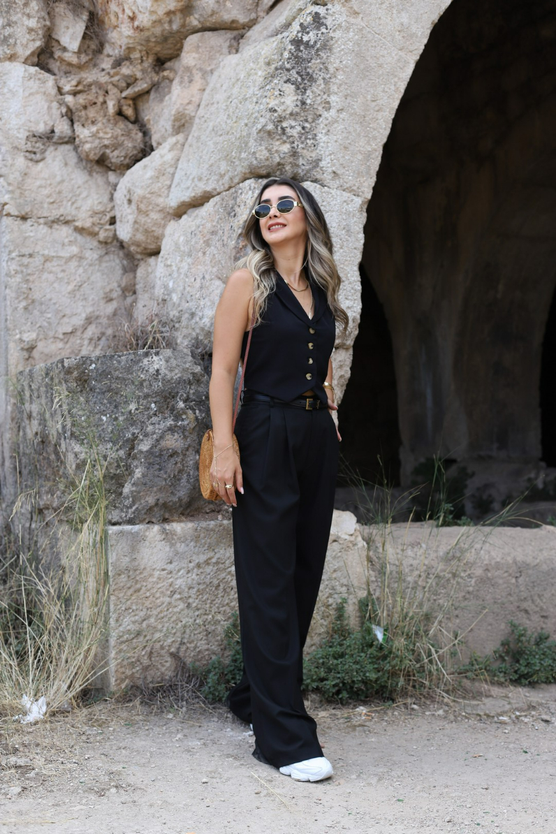 SİYAH SIRT DEKOLTE KETEN YELEK