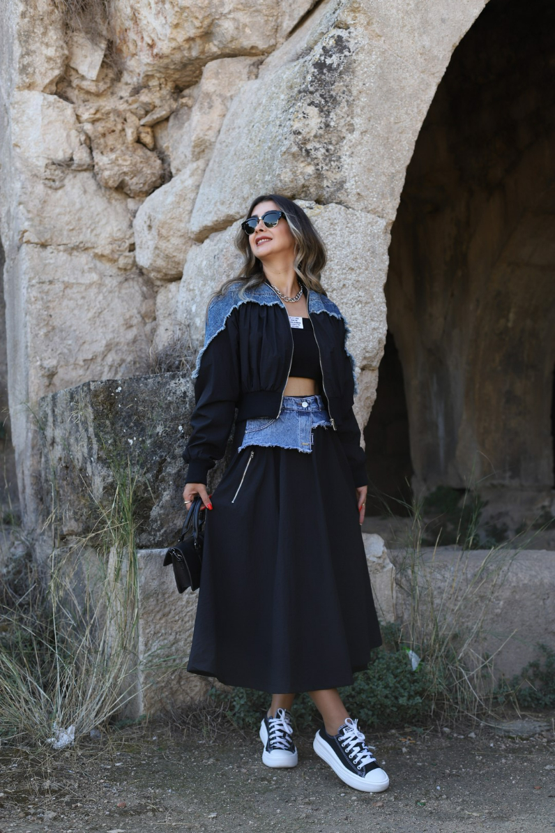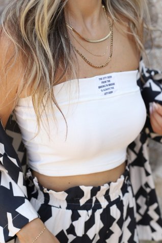 SİYAH YAZI DETAY STRAPLEZ BLUZ
