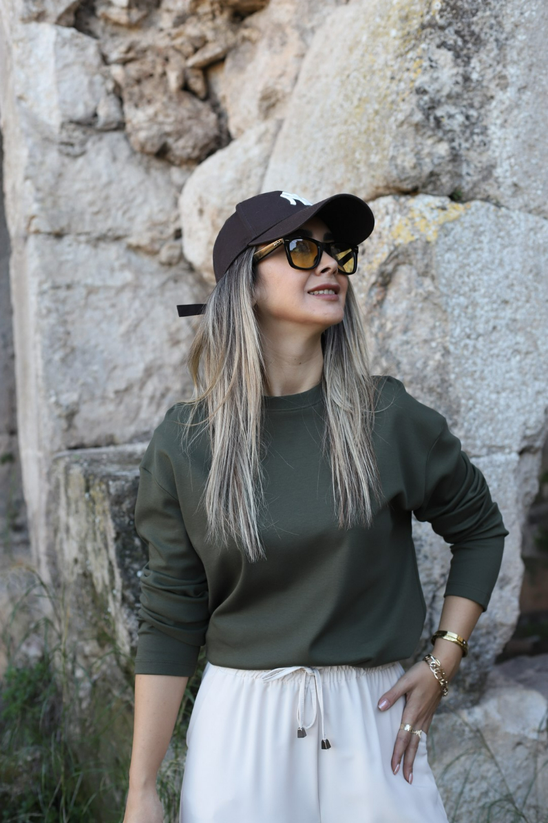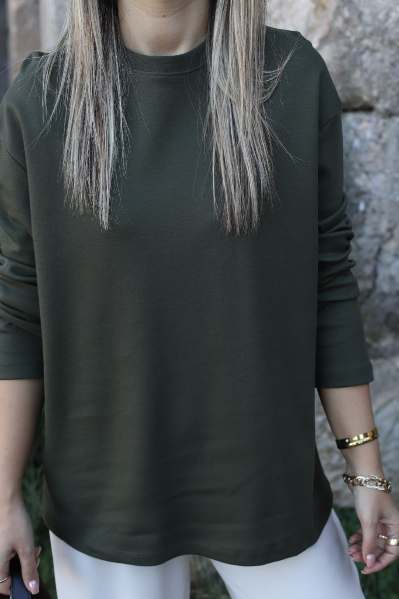 YEŞİL STANDART BEDEN ORJİN MARKA UZUN KOLLU BLUZ